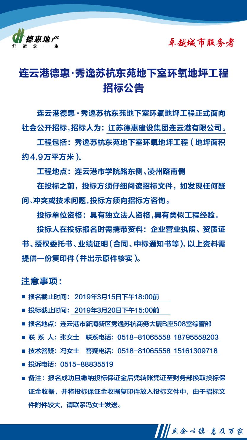 连云港德惠·秀逸苏杭东苑地下室环氧地坪工程招标公告