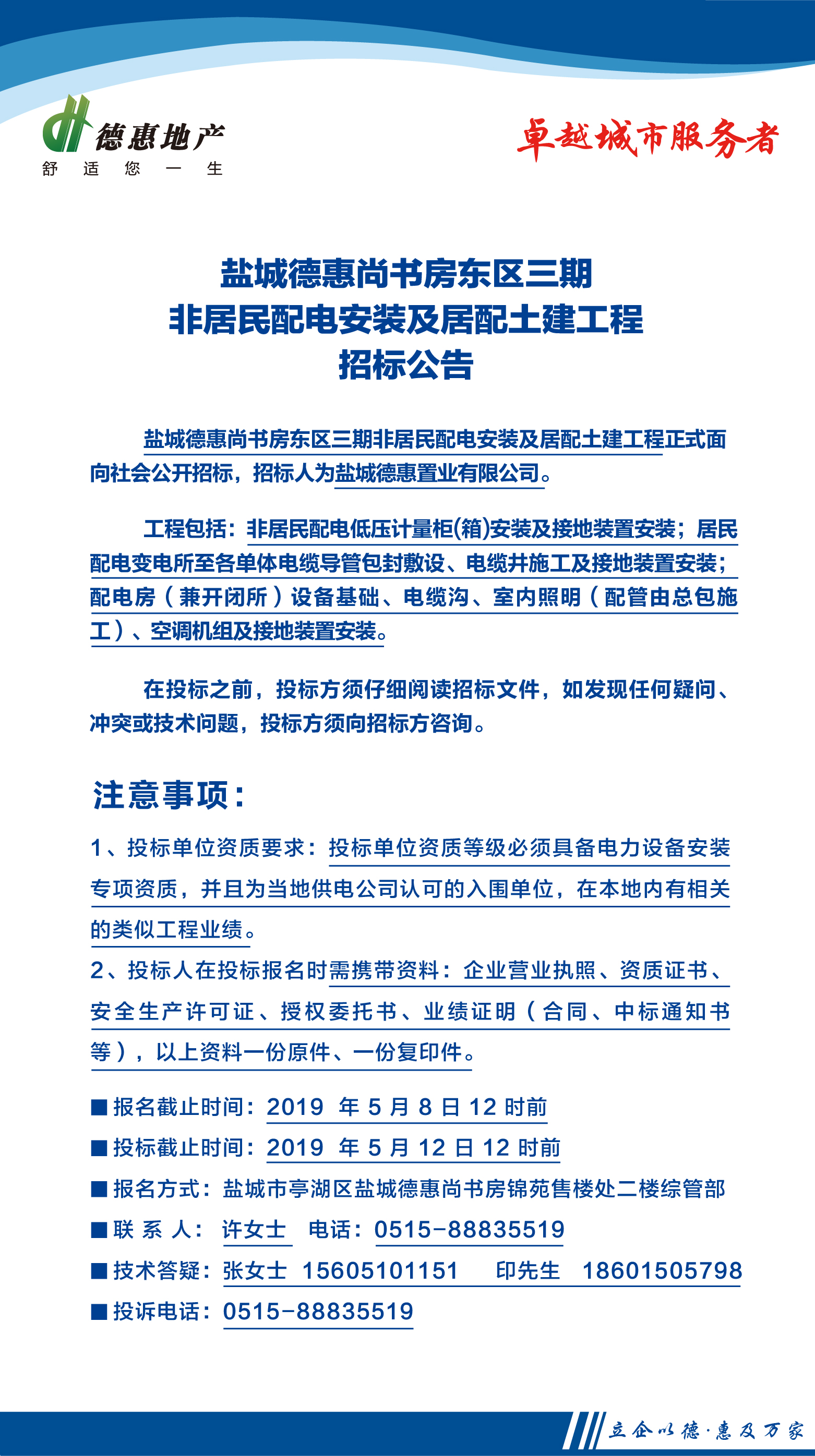 盐城德惠尚书房东区三期非居民配电安装及居配土建工程招标公告