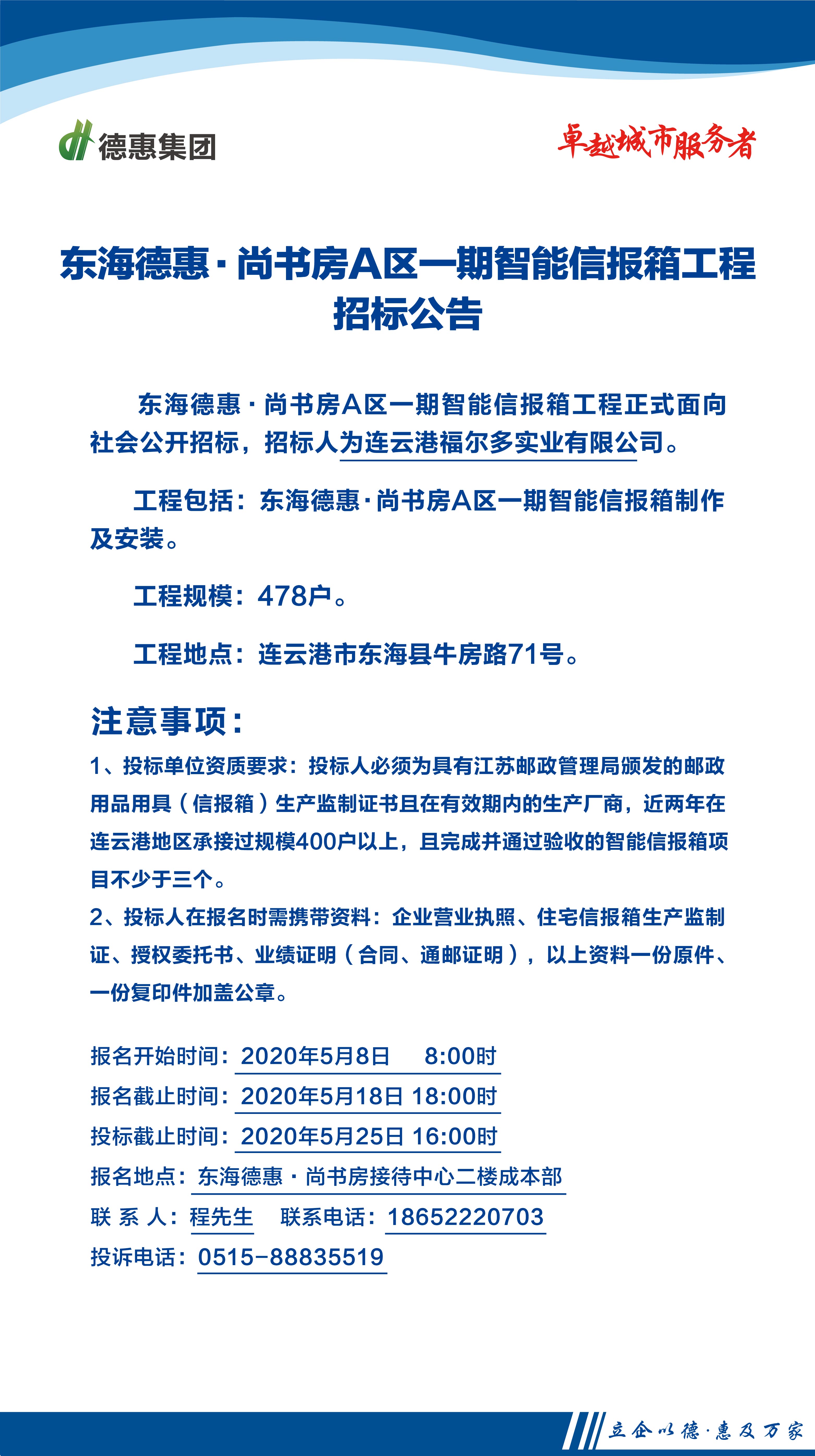 东海德惠尚书房A区一期智能信报箱工程招标公告
