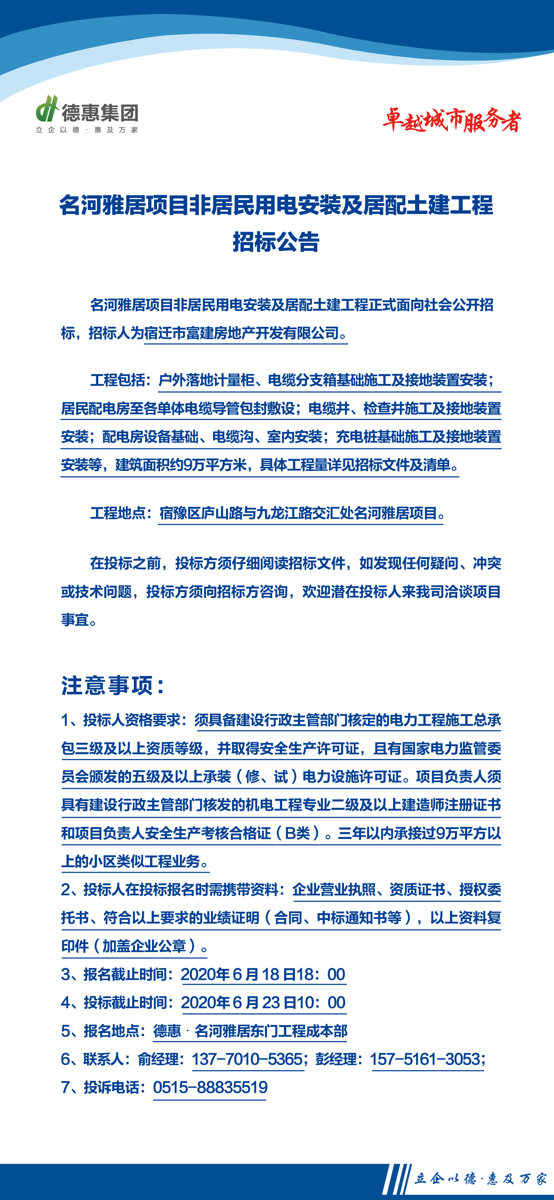 名河雅居项目非居民用电安装及居配土建工程招标公告 R