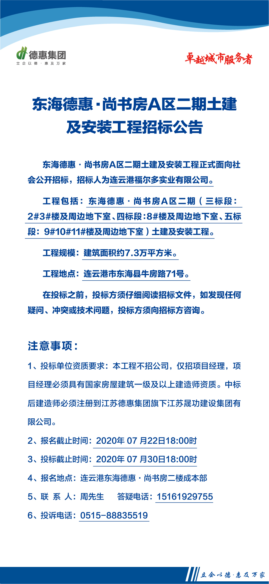 东海德惠·尚书房A区二期土建及安装工程招标公告