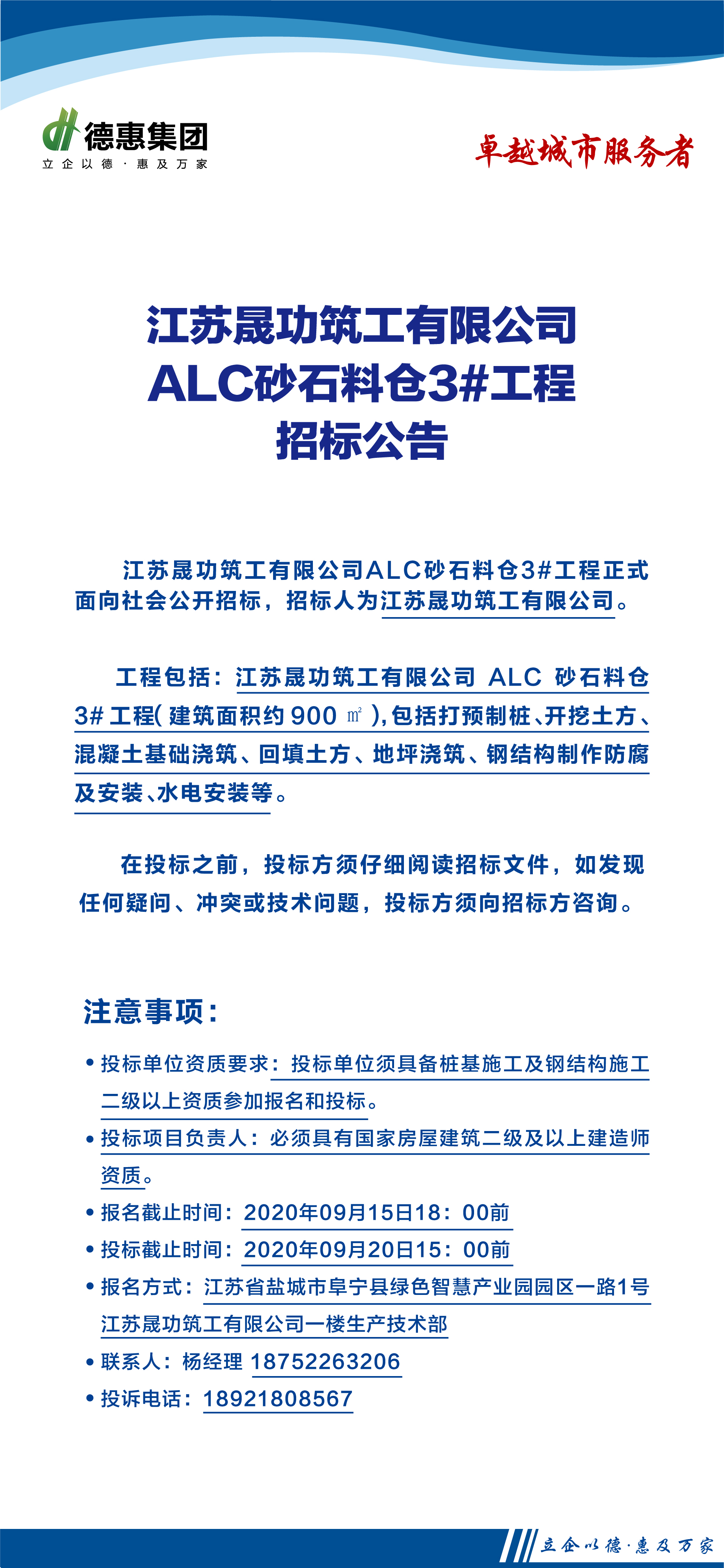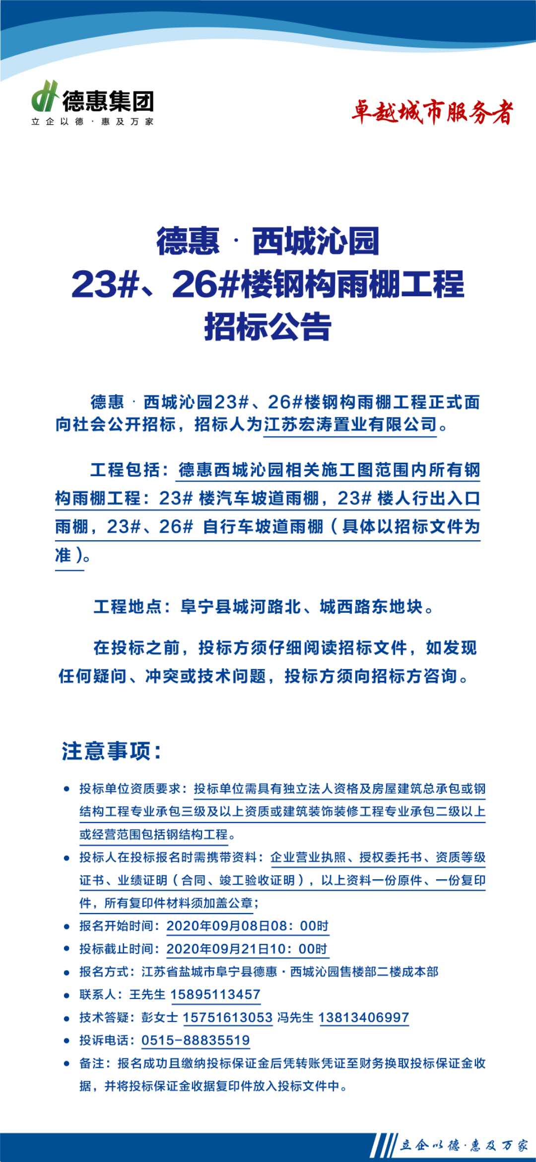 连云港德惠尚书房二期(22#、30#、31#、32#)栏杆、雨棚工程招标公告