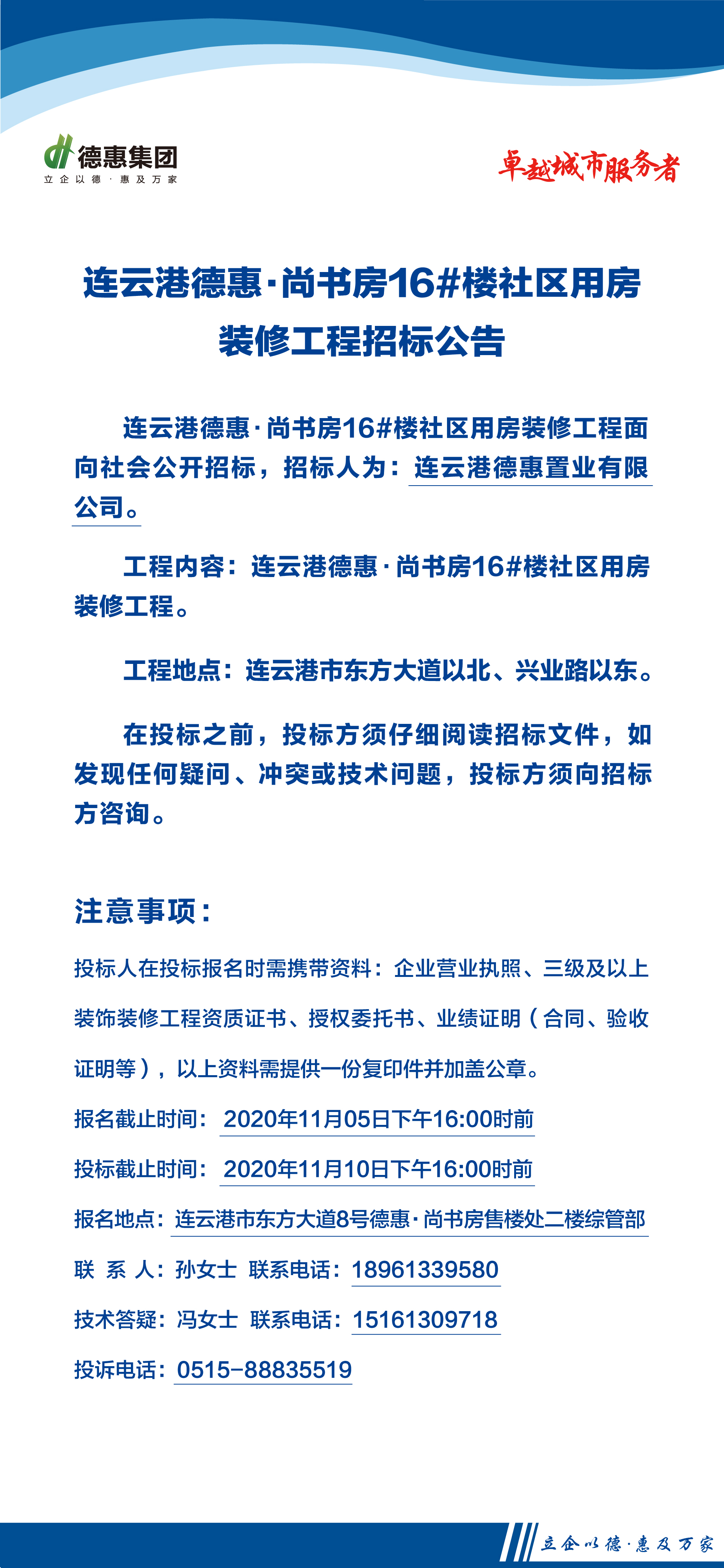 连云港德惠·尚书房16#楼社区用房装修工程招标公告