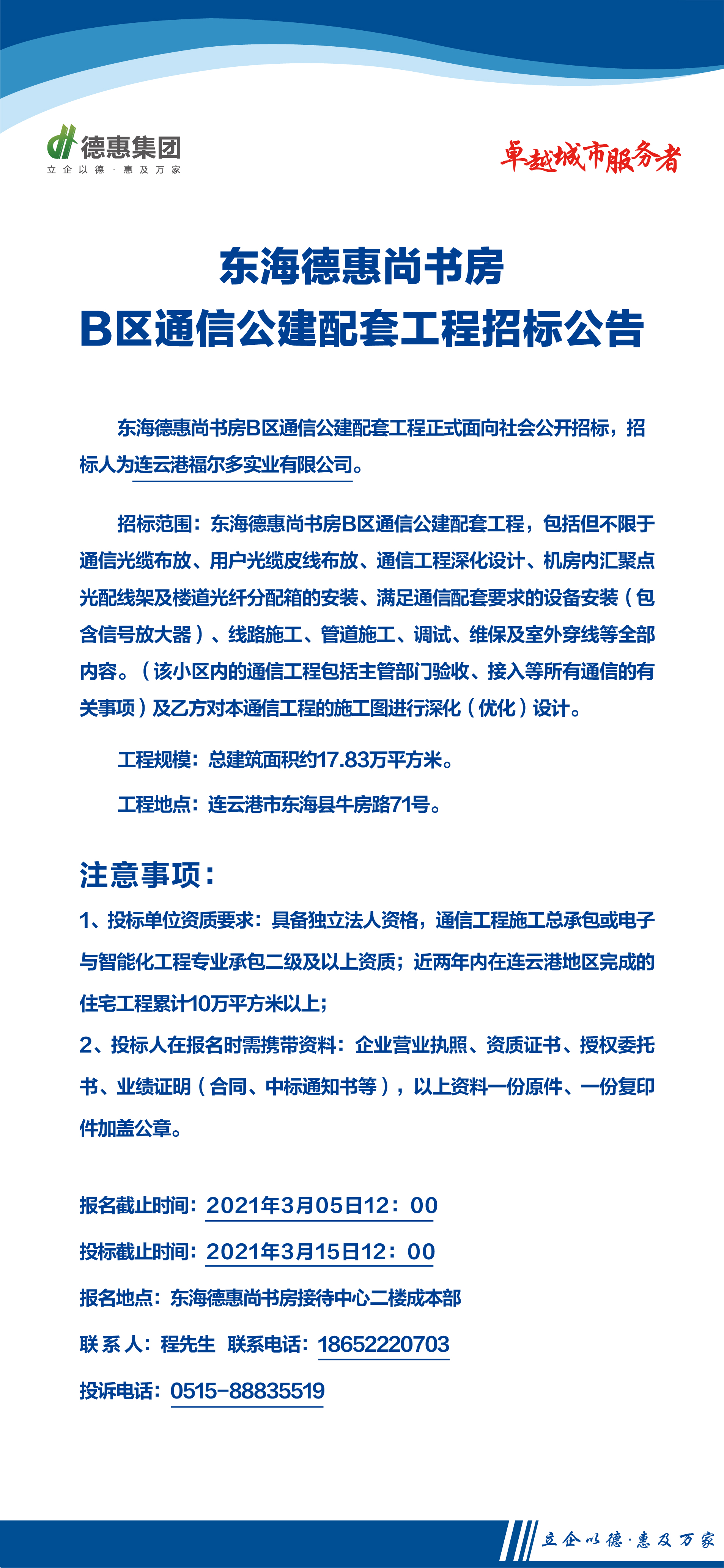 盱眙德惠·河滨一号雨污水、道路工程招标公告