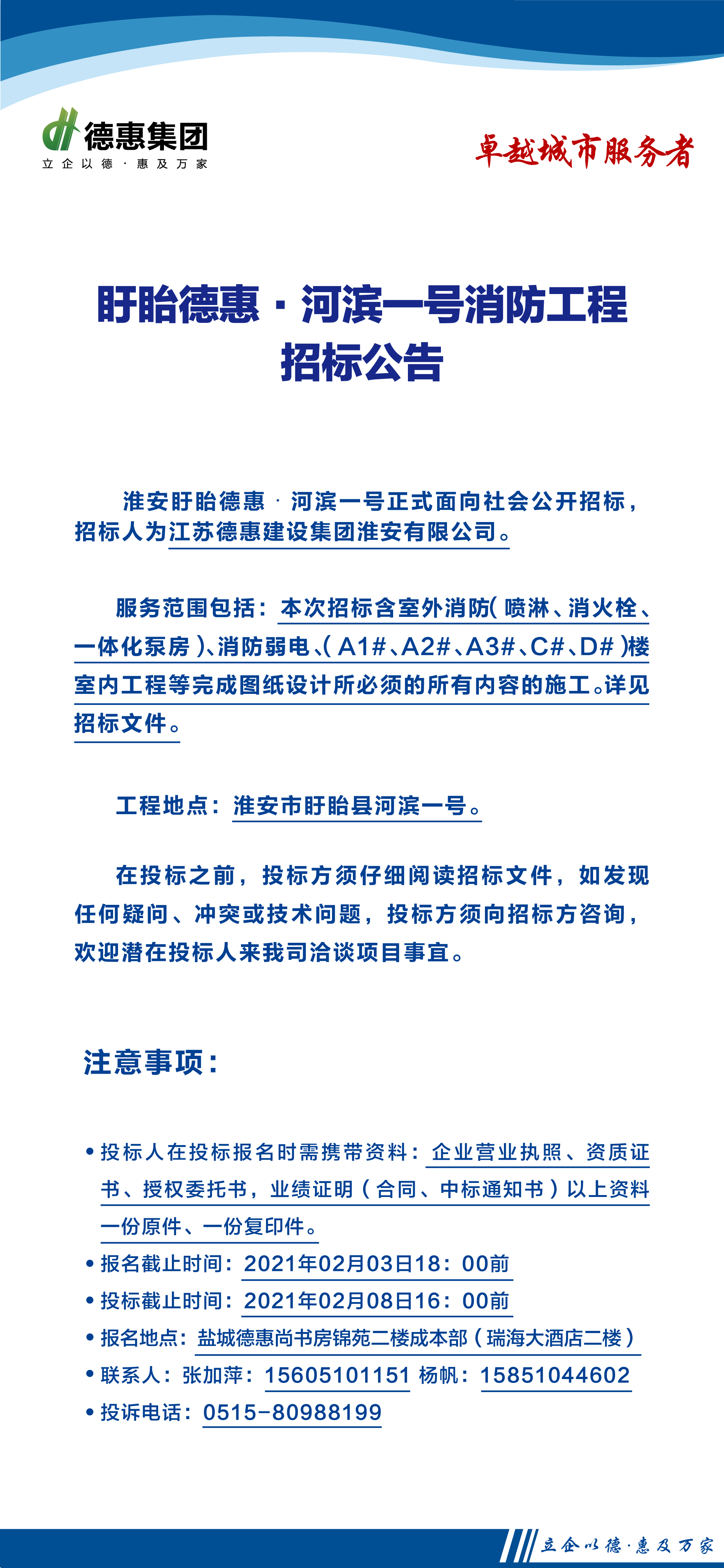 盱眙德惠·河滨一号消防工程招标公告
