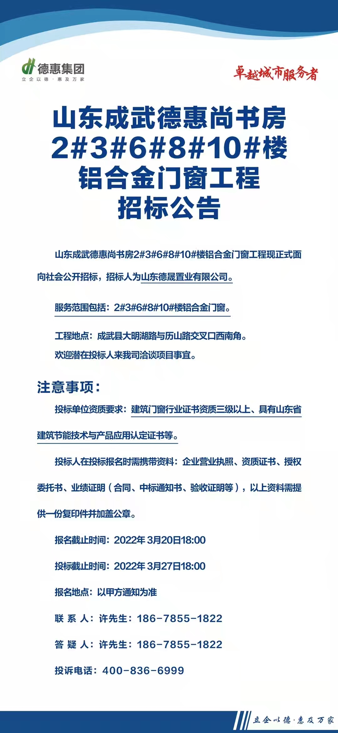 德惠集团客户热线:400-836-6999