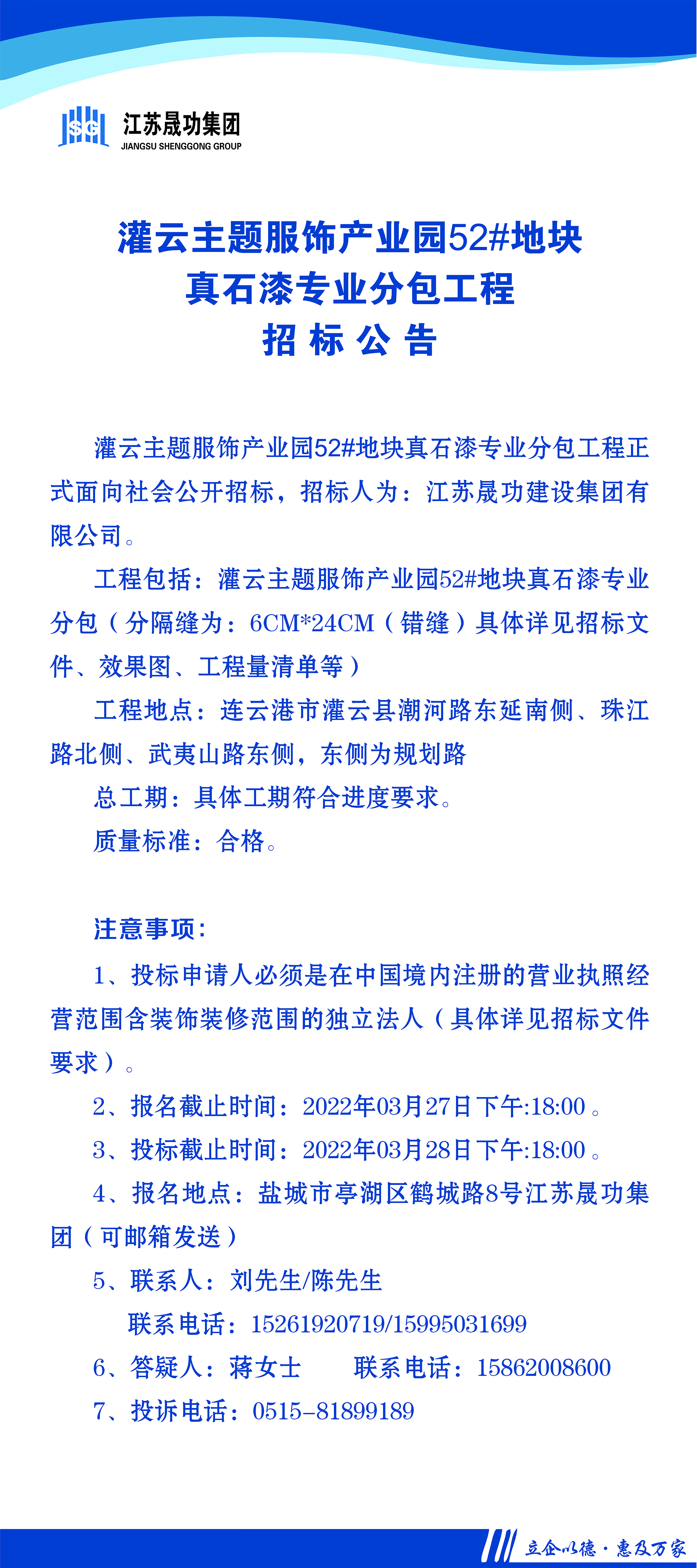 灌云主题服饰产业园52#地块真石漆专业分包工程