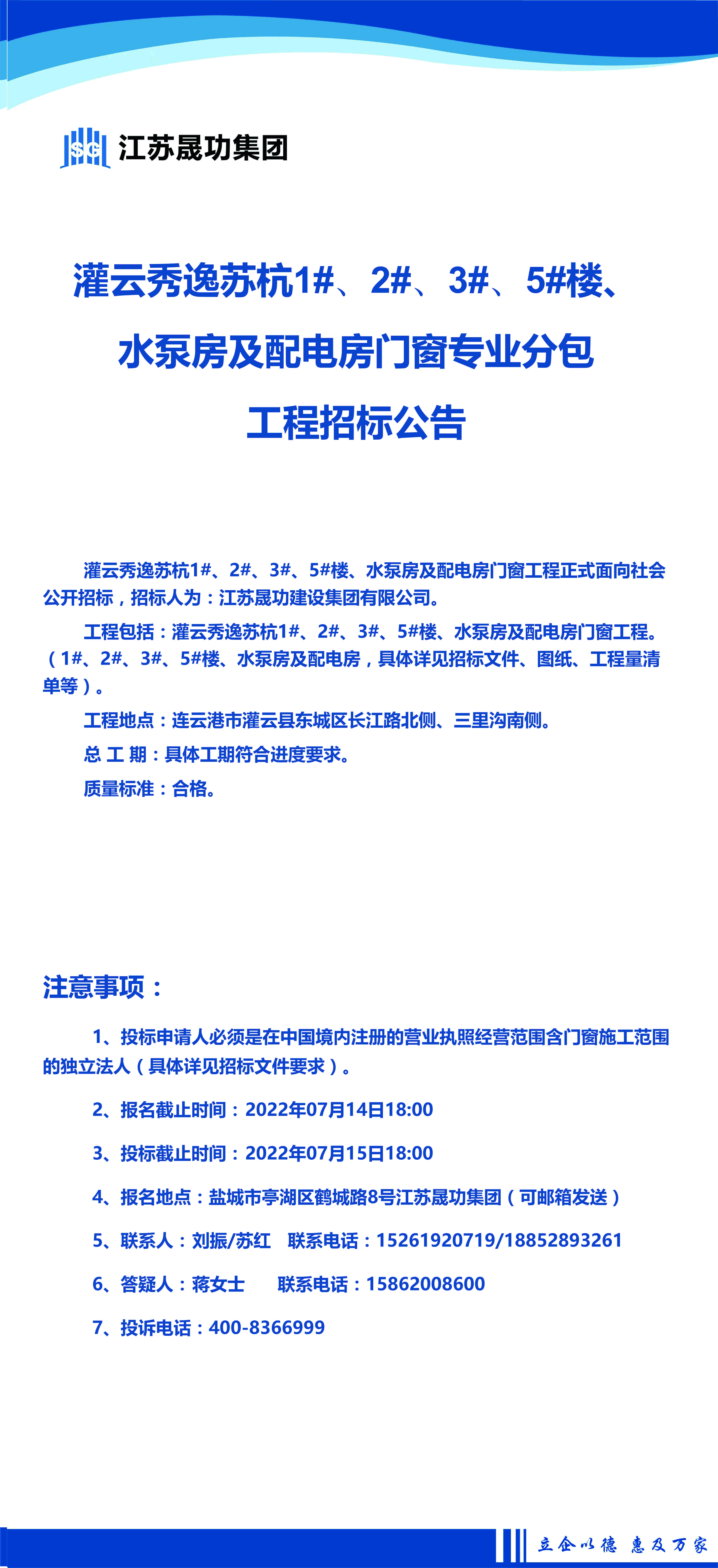 灌云秀逸苏杭1#、2#、3#、5#楼、水泵房及配电房门窗专业分包工程