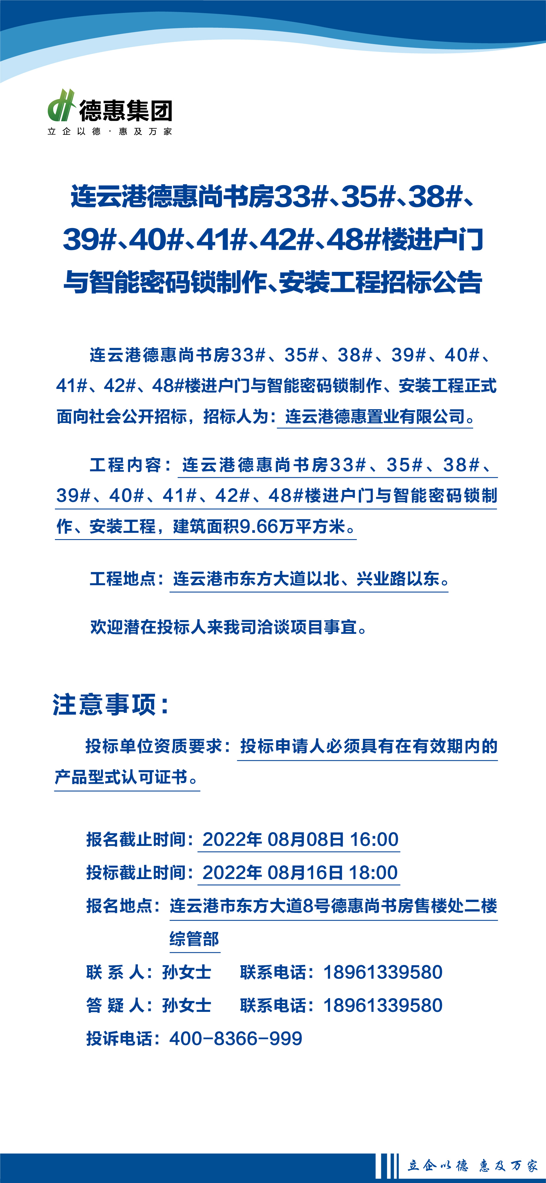连云港德惠·尚书房进户门、智能密码锁工程
