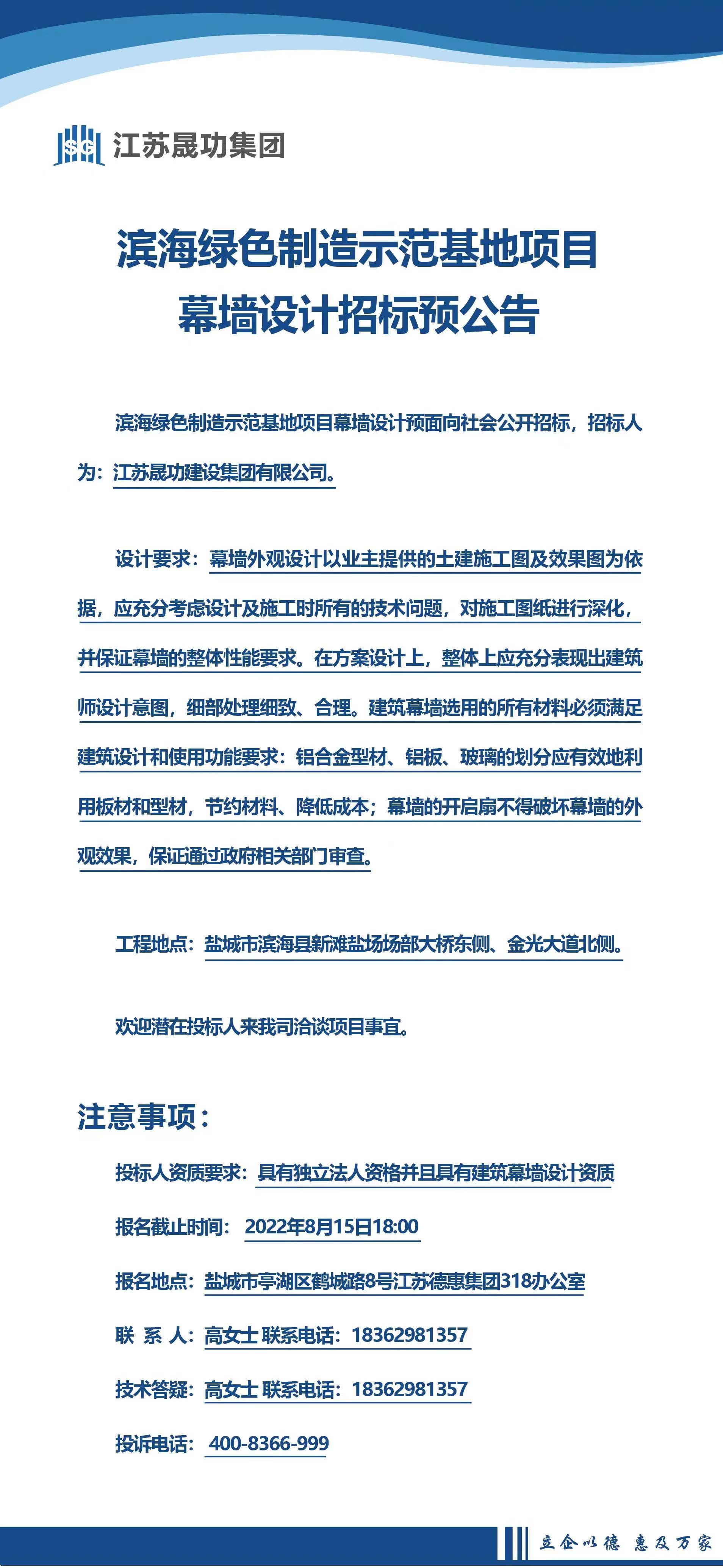 滨海绿色制造示范基地项目幕墙设计预招标公告