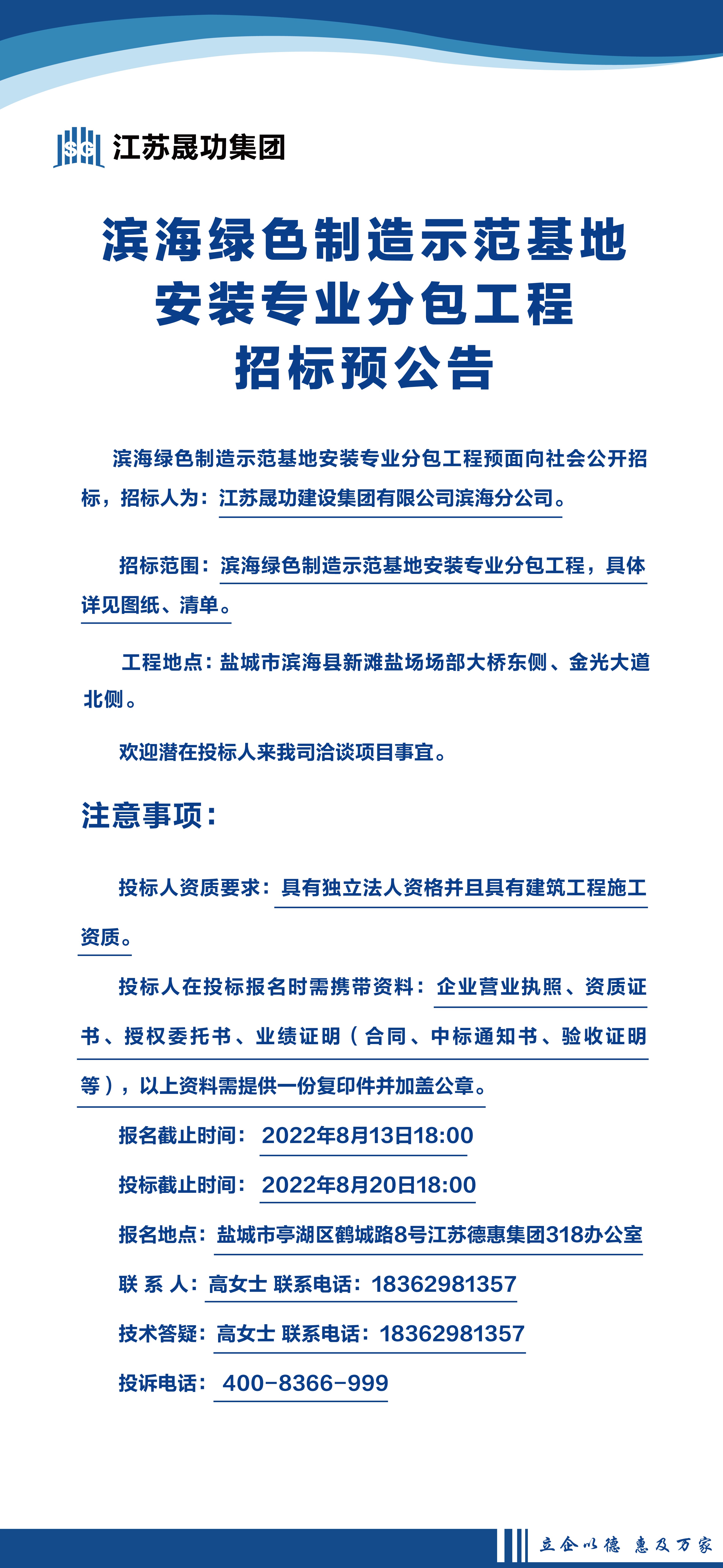 滨海绿色制造示范基地安装专业分包工程