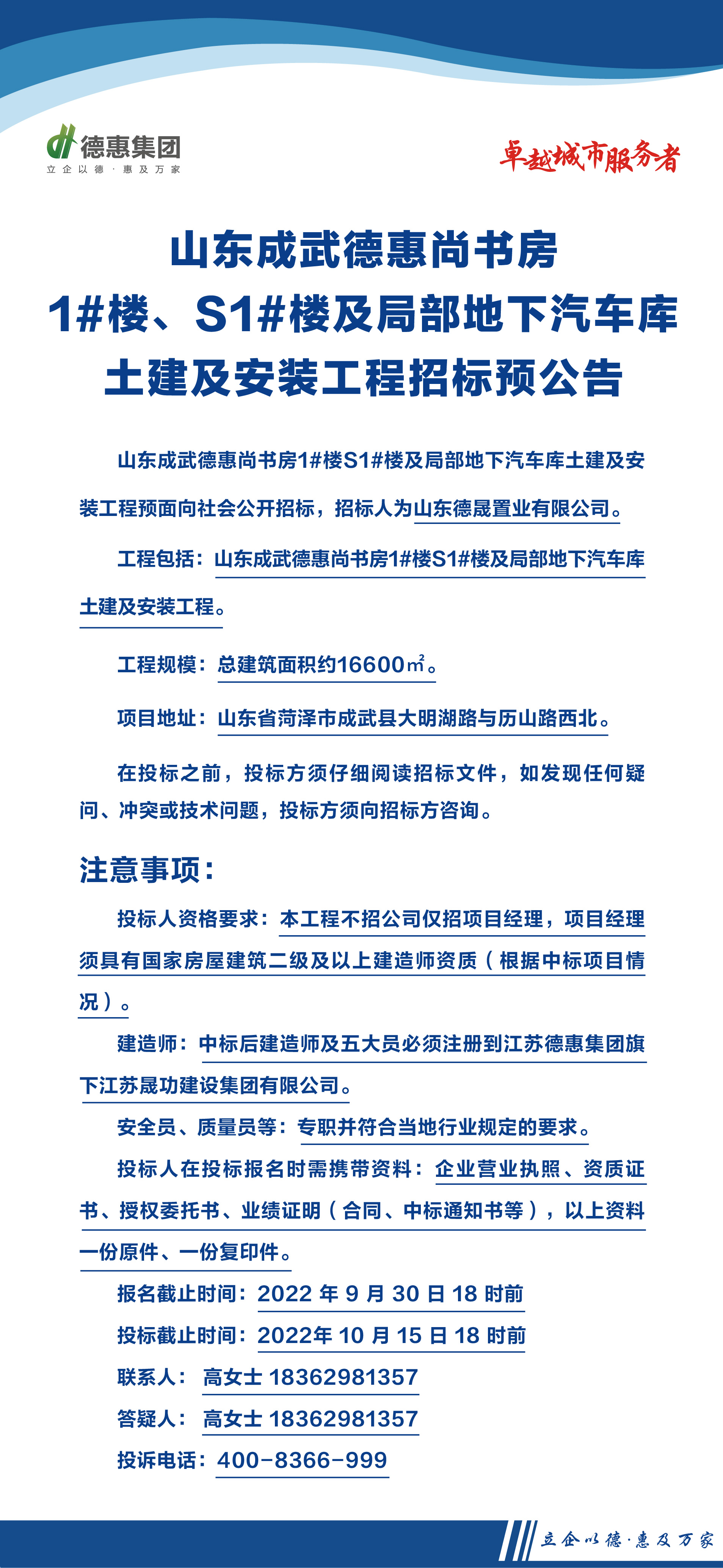 山东成武德惠尚书房1#、S1#楼及局部地库土建及安装工程