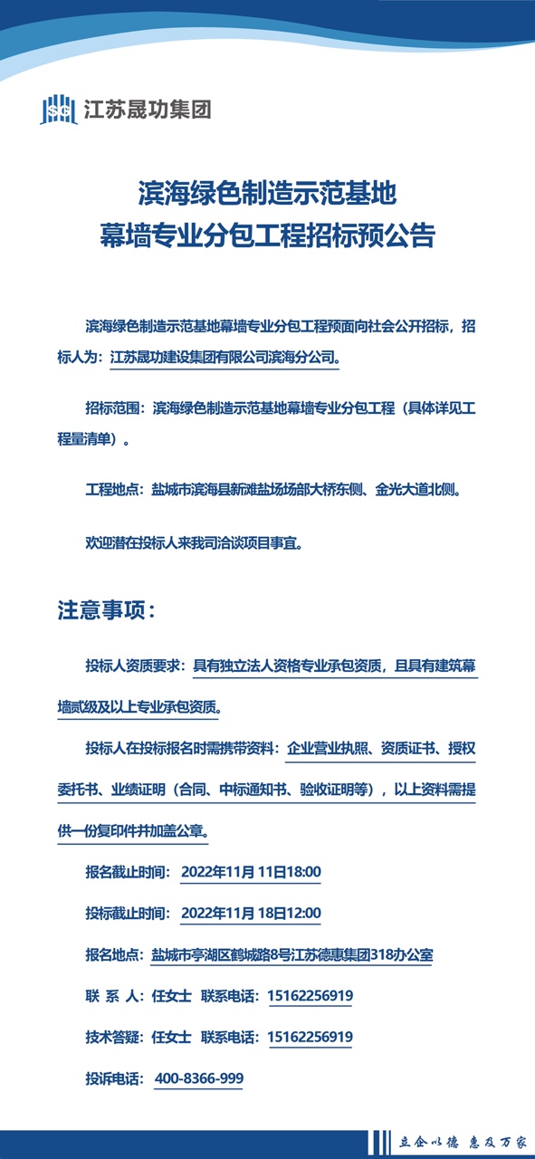 滨海绿色制造示范基地综合楼、宿舍楼装饰装修专业分包工程