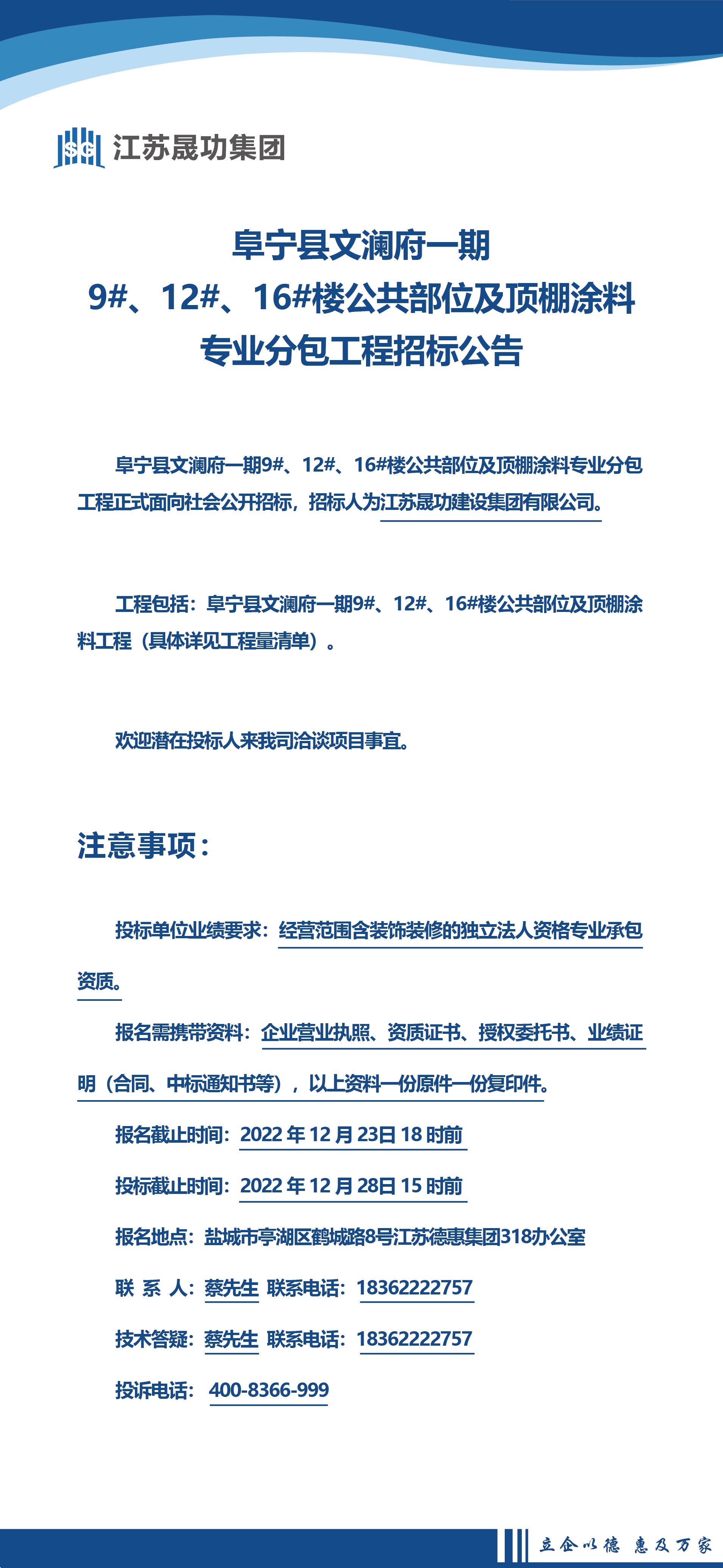 阜宁县文澜府一期9#、12#、16#楼公共部位及顶棚涂料专业分包工程