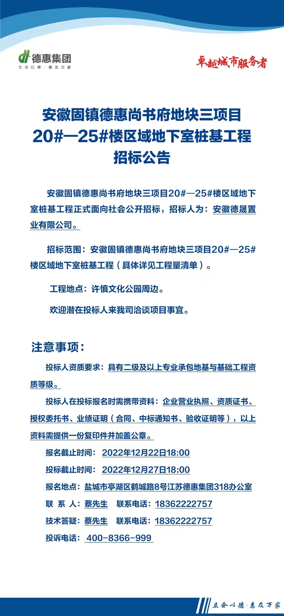 安徽固镇德惠尚书府地块三项目20#—25#楼区域地下室桩基工程