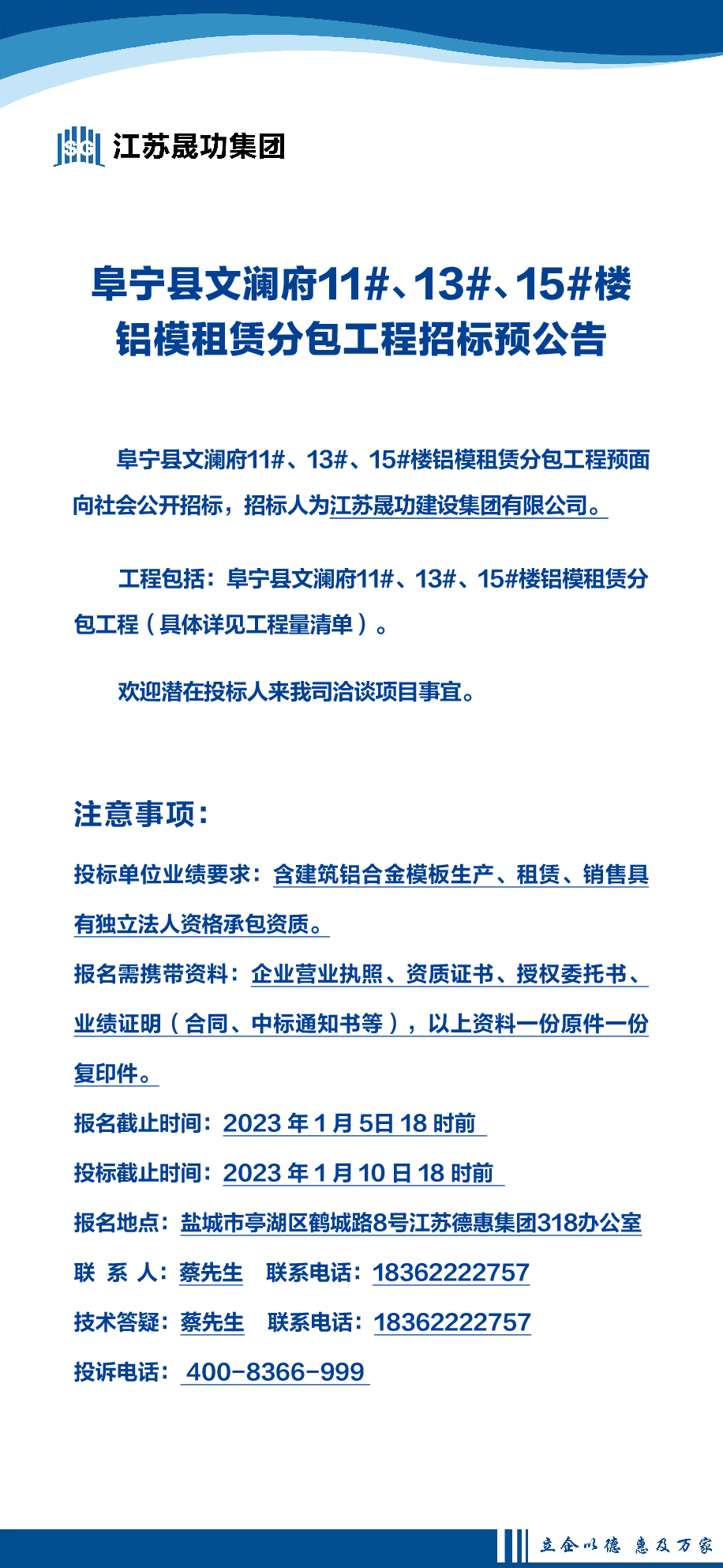 阜宁县文澜府11#、13#、15#楼铝模租赁分包工程