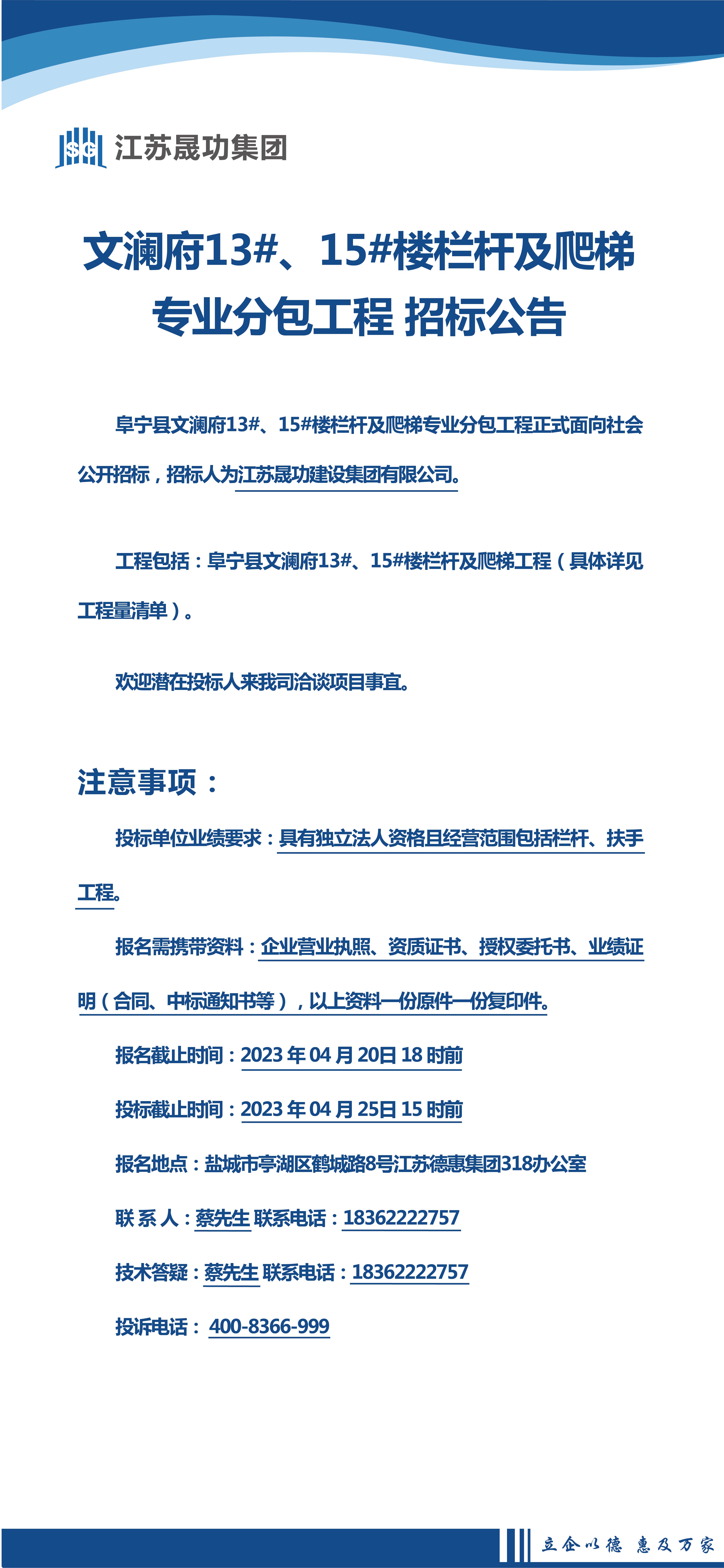 阜宁文澜府13#、15#楼栏杆、爬梯专业分包工程