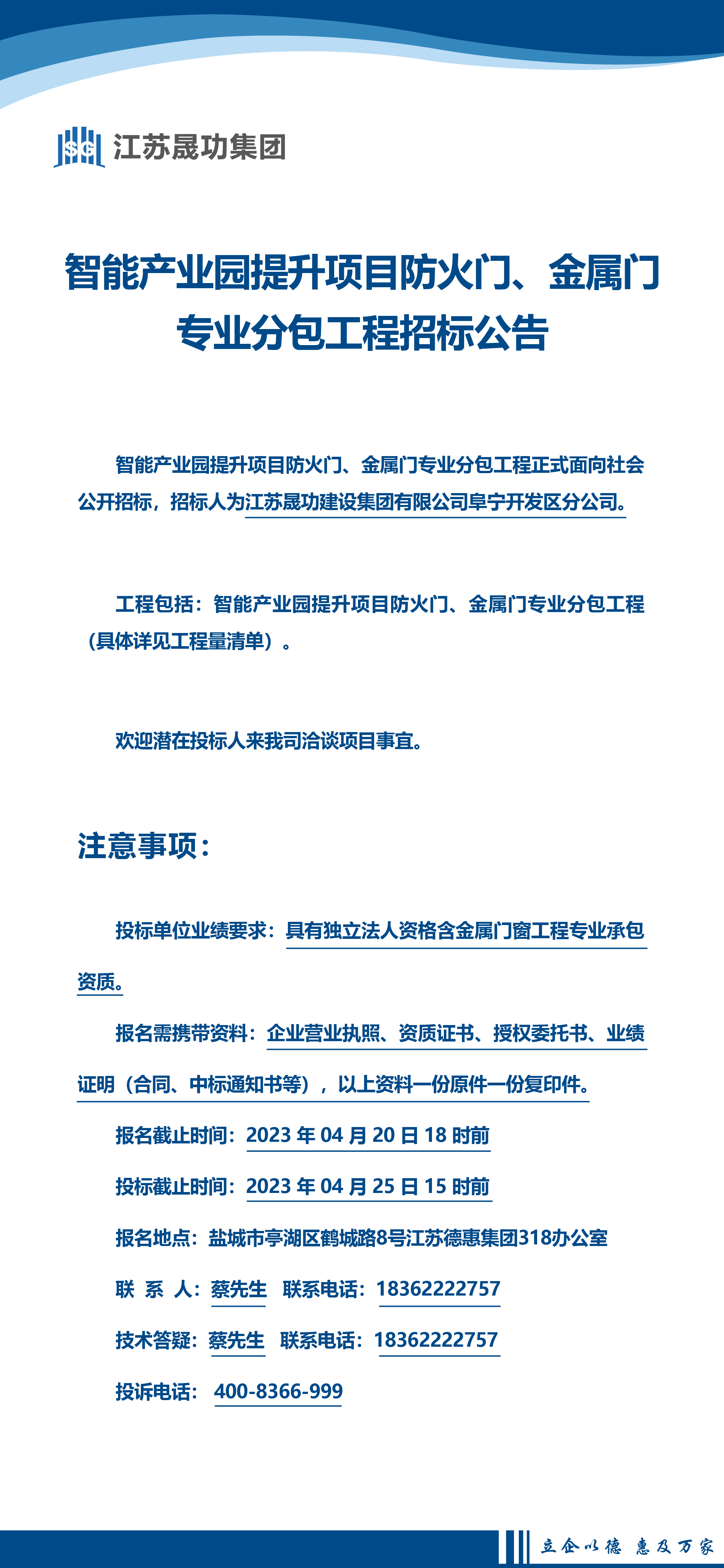 智能装备产业园提升项目防火门、金属门专业分包工程