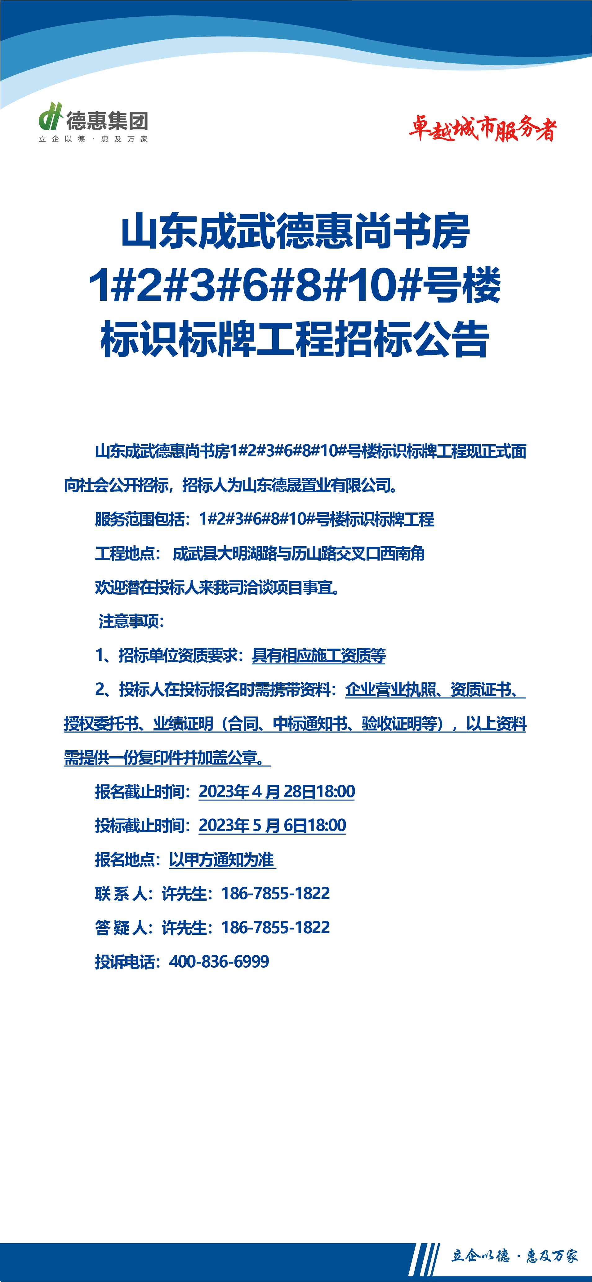 山东成武德惠尚书房1#、2#、3#、6#、8#、10#楼标识标牌工程