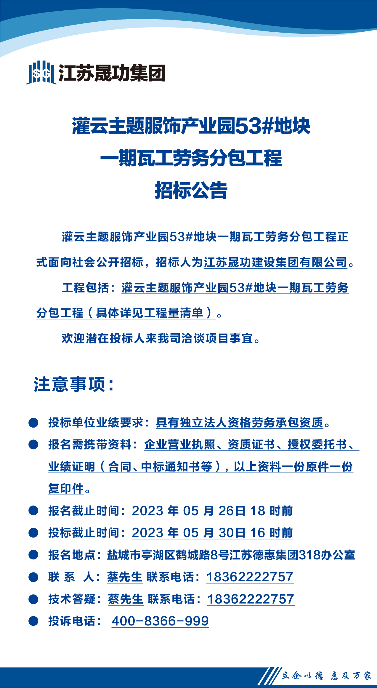 灌云主题服饰产业园53#地块一期瓦工劳务分包工程