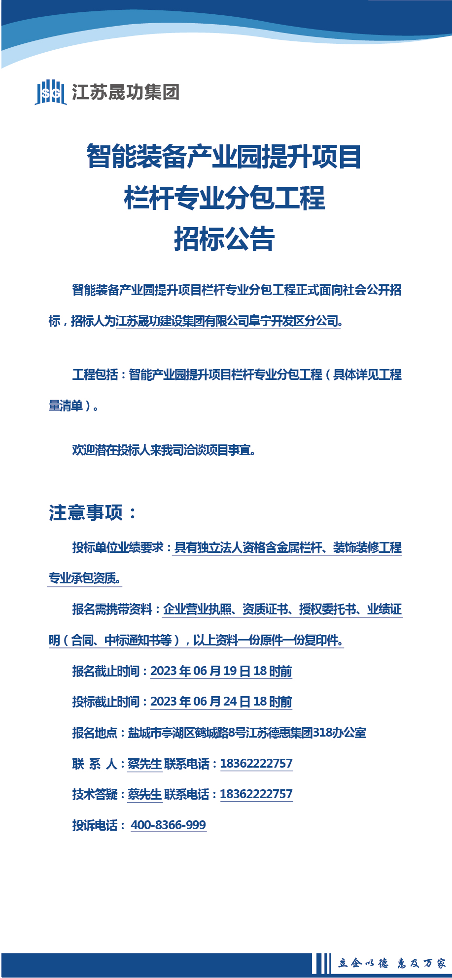 智能装备产业园提升项目栏杆专业分包工程