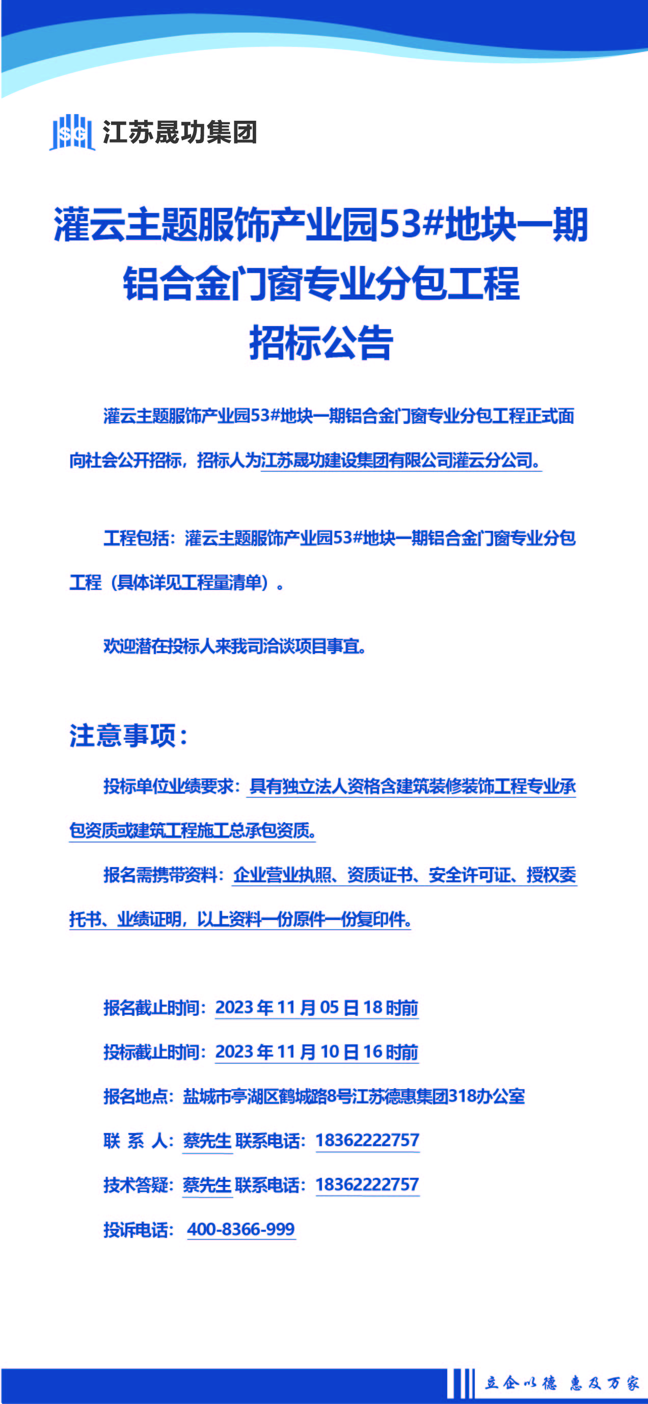 灌云主题服饰产业园53#地块一期铝合金门窗专业分包工程