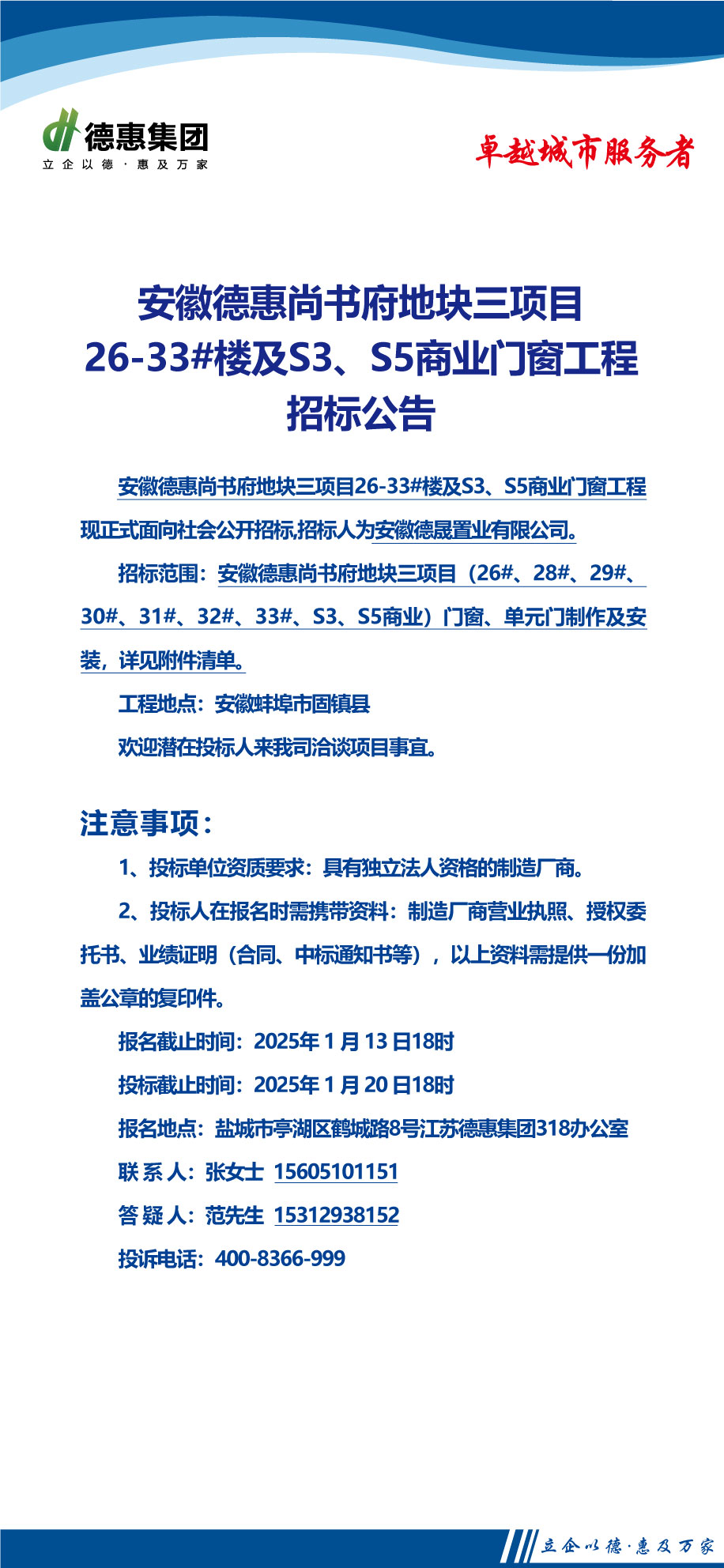 安徽德惠尚书府项目26-33#楼、S3、S5商业门窗工程