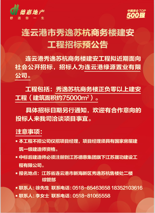 连云港 德惠·秀逸苏杭商务楼建安工程招标公告