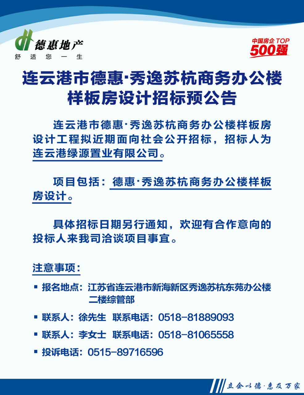 连云港德惠·秀逸苏杭东苑样板房设计招标预公告