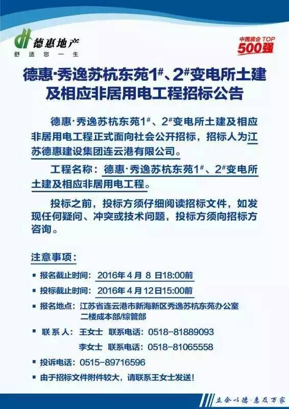连云港秀逸苏杭东苑1#、2#变电所土建招标公告