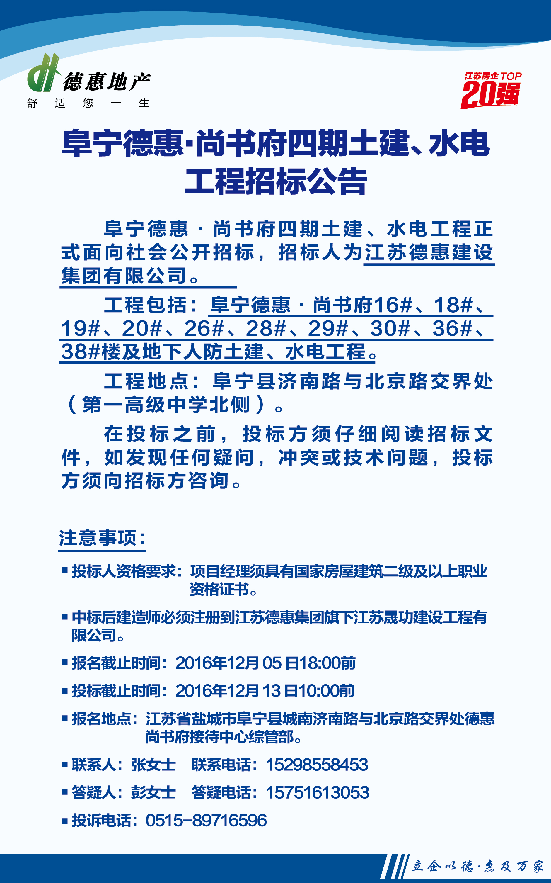 阜宁德惠·尚书府四期土建、水电工程招标公告