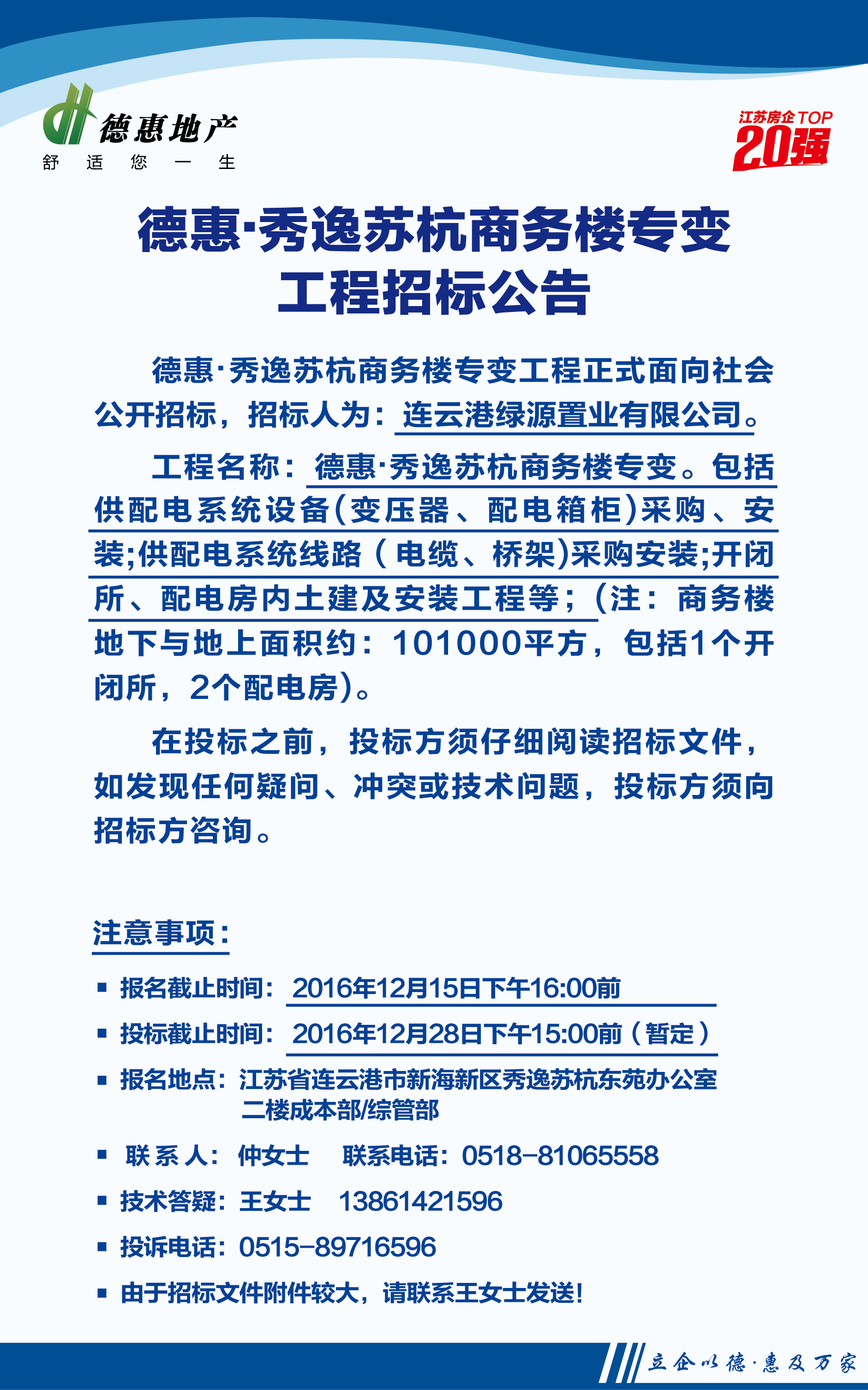 德惠﹒秀逸苏杭商务楼专变工程招标公告