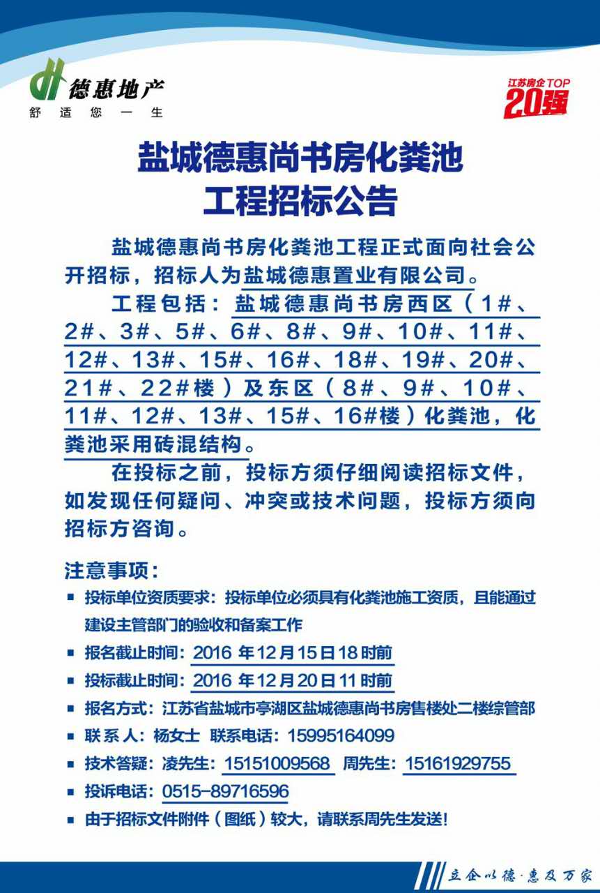 盐城德惠尚书房化粪池工程招标公告