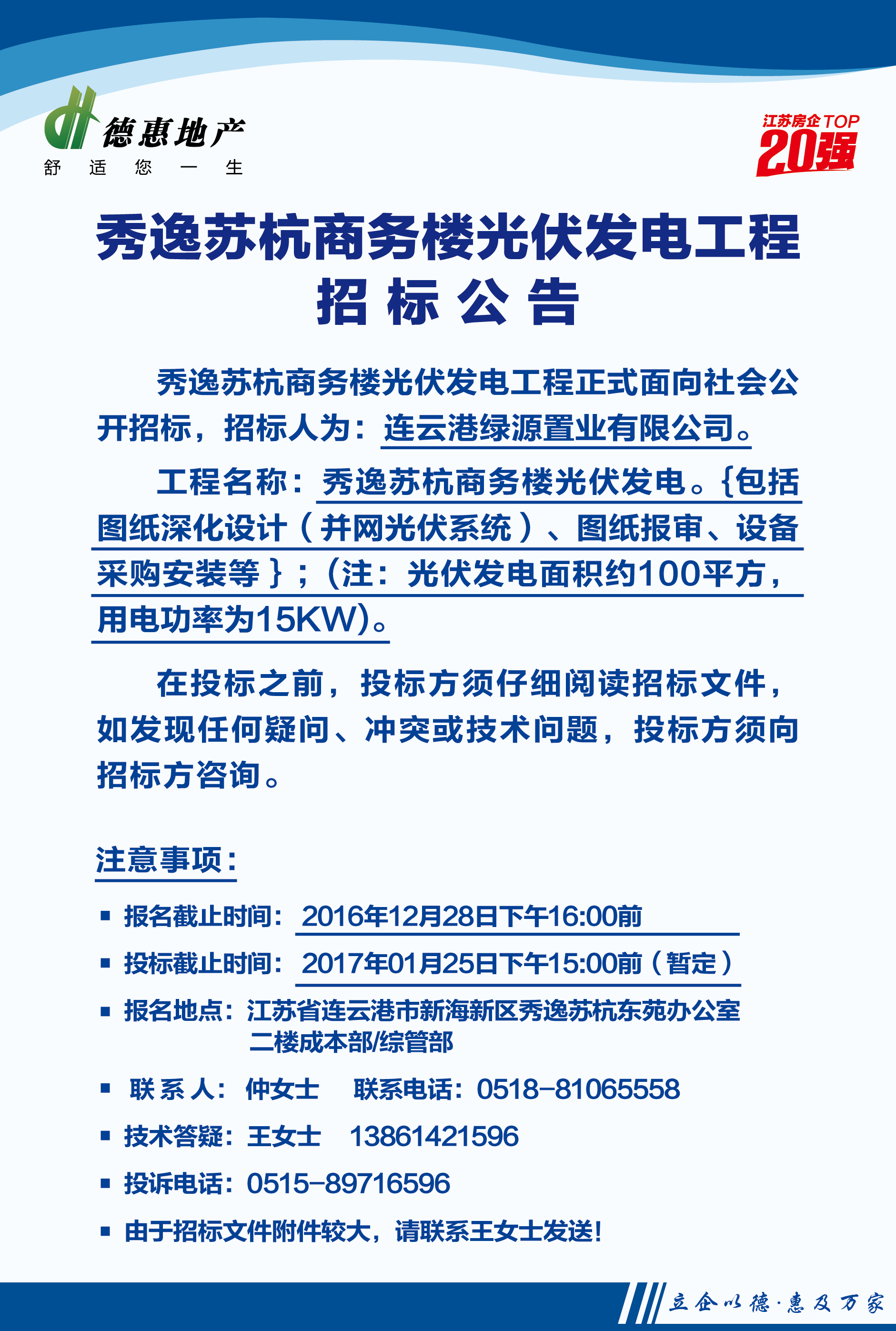 连云港﹒秀逸苏杭商务楼光伏发电工程招标公告