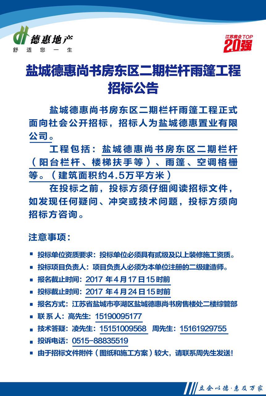 盐城德惠尚书房东区二期栏杆雨篷工程招标公告