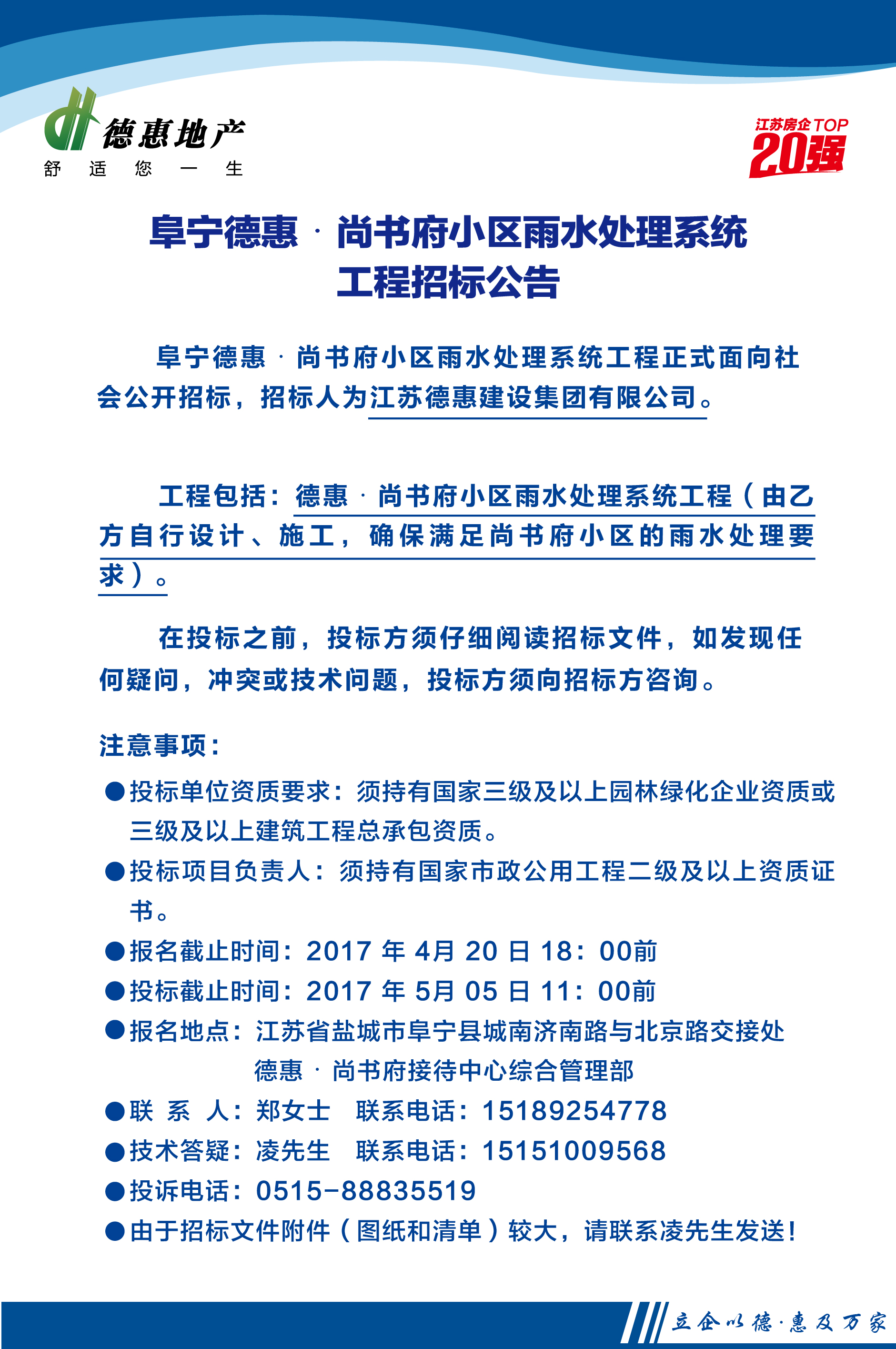 阜宁德惠•尚书府小区雨水处理系统工程招标公告