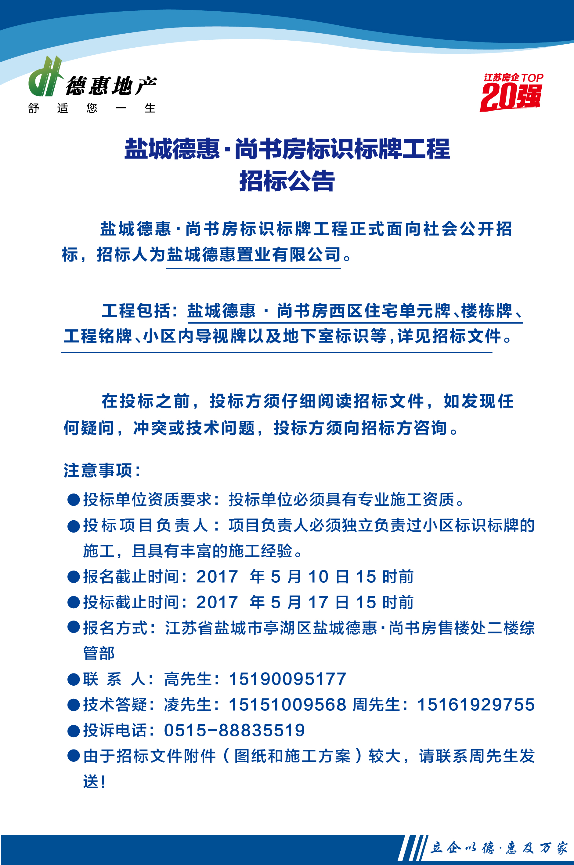 盐城德惠·尚书房标识标牌工程招标公告