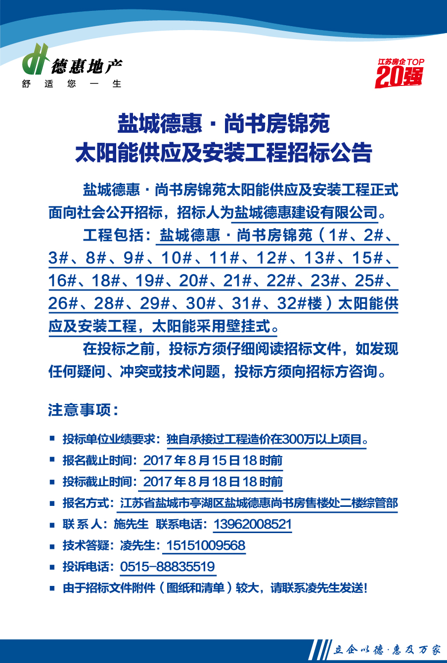 盐城德惠•尚书房锦苑太阳能供应及安装工程招标公告