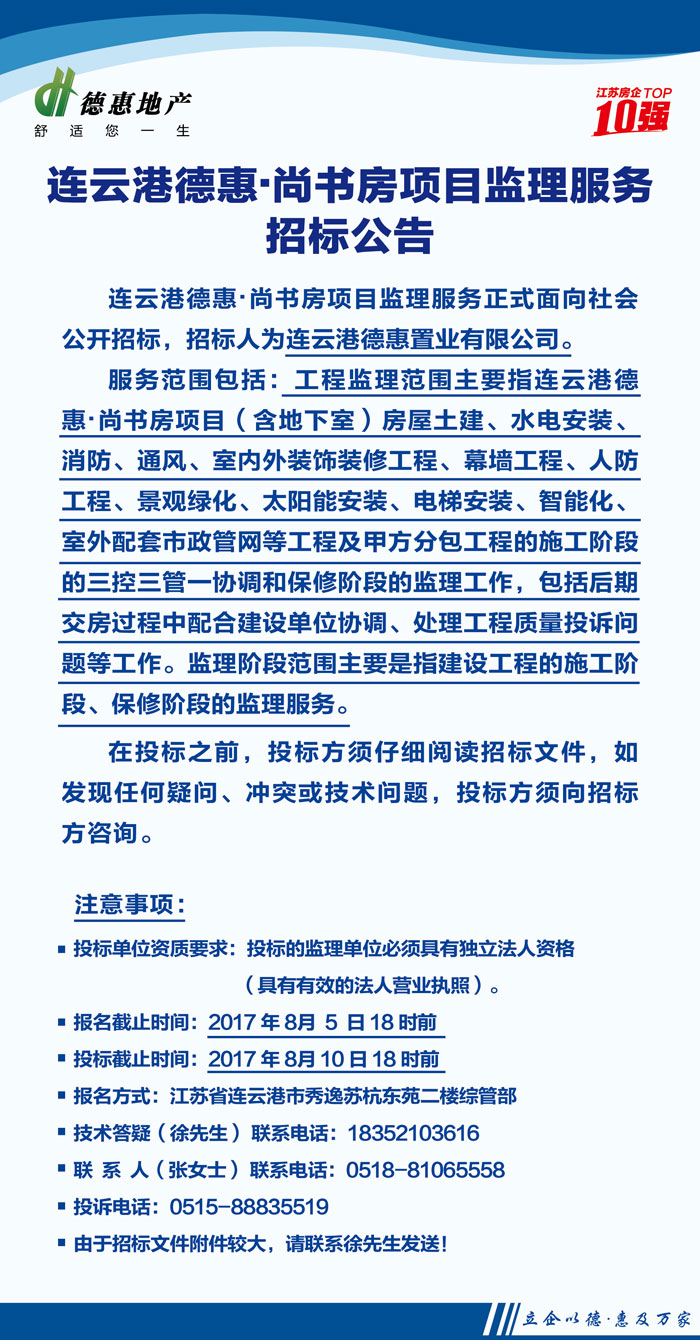 连云港德惠·尚书房项目造价咨询服务招标公告
