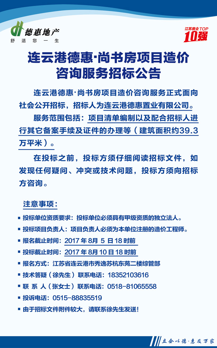 连云港德惠·尚书房项目造价咨询服务招标公告