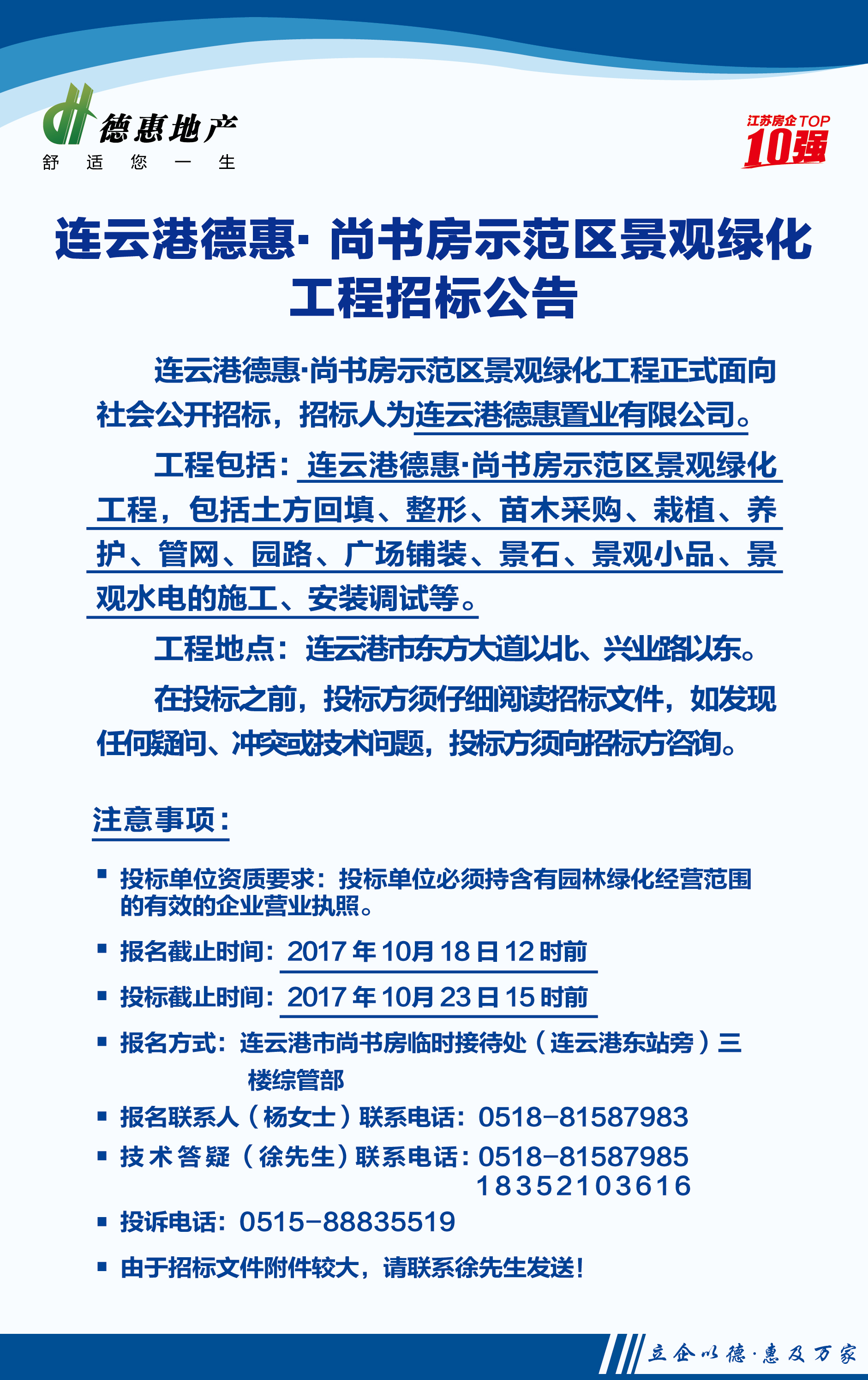 连云港德惠·尚书房示范区景观绿化工程招标公告