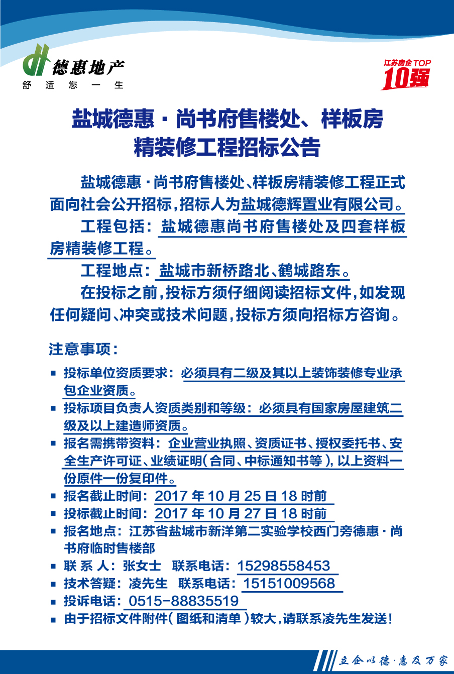 盐城德惠·尚书府售楼处、样板房精装修工程招标公告