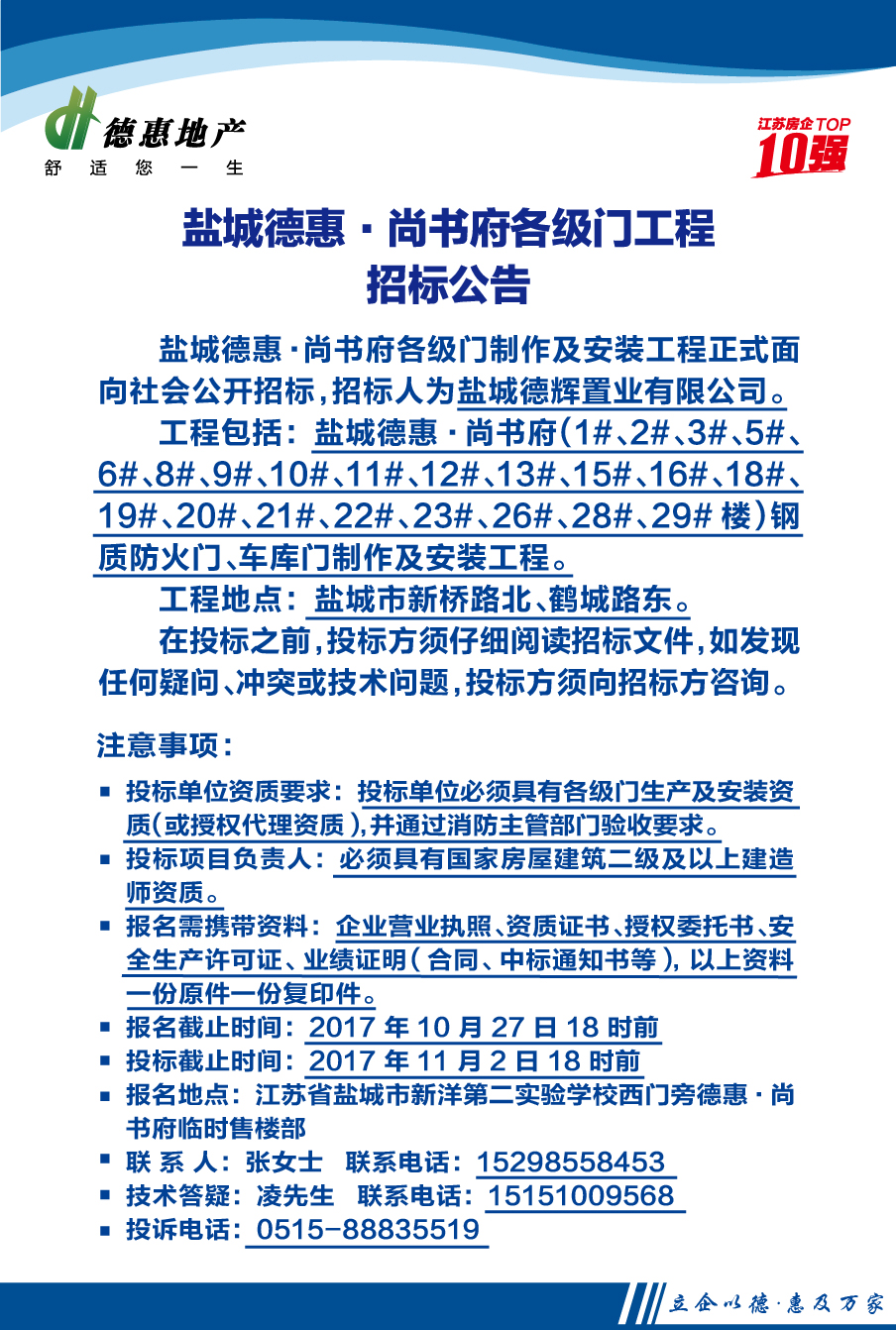 盐城德惠·尚书府售楼处、样板房精装修工程招标公告