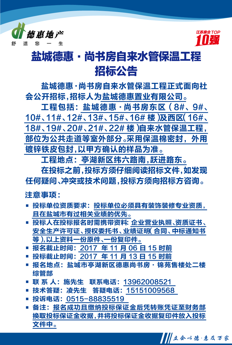 盐城德惠·尚书府电梯采购及安装工程招标公告
