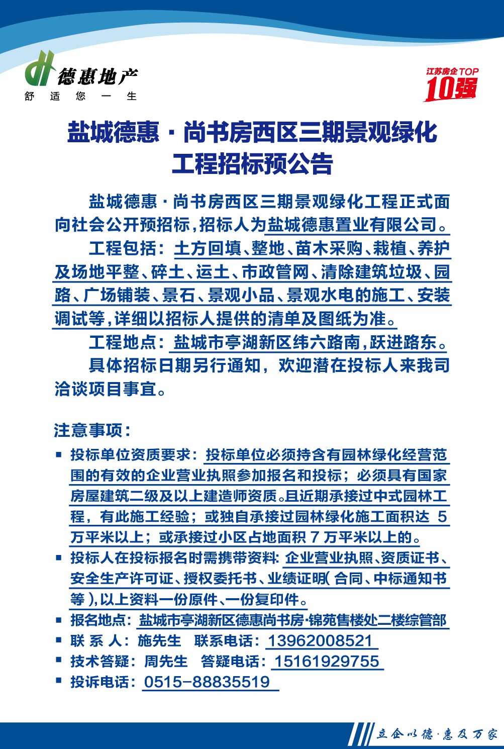 盐城德惠·尚书房西区三期景观绿化工程招标预公告