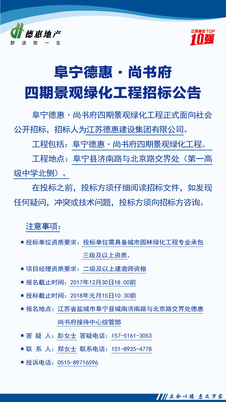 阜宁德惠·尚书府四期景观绿化工程招标公告