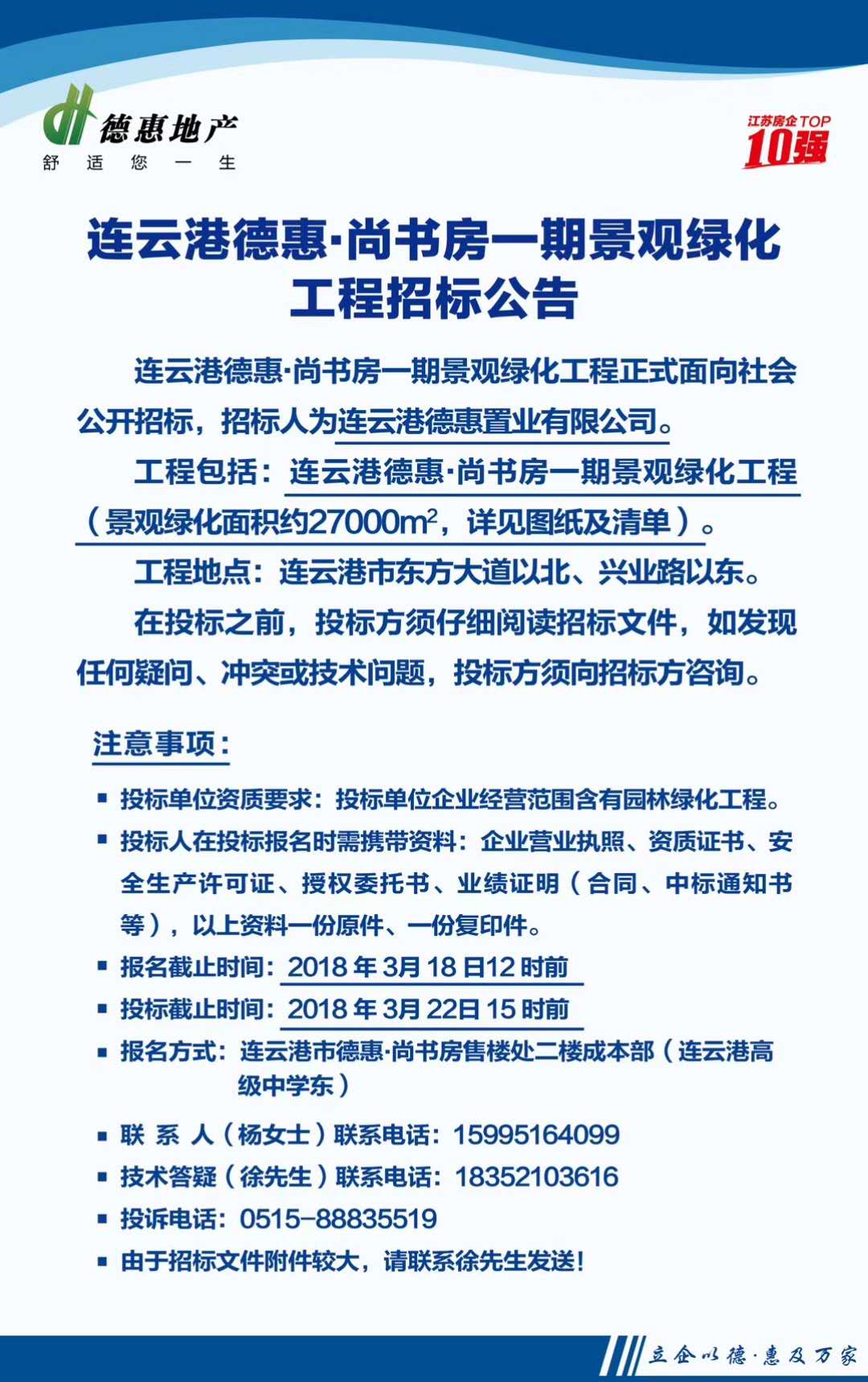 连云港德惠·尚书房一期景观绿化工程招标公告
