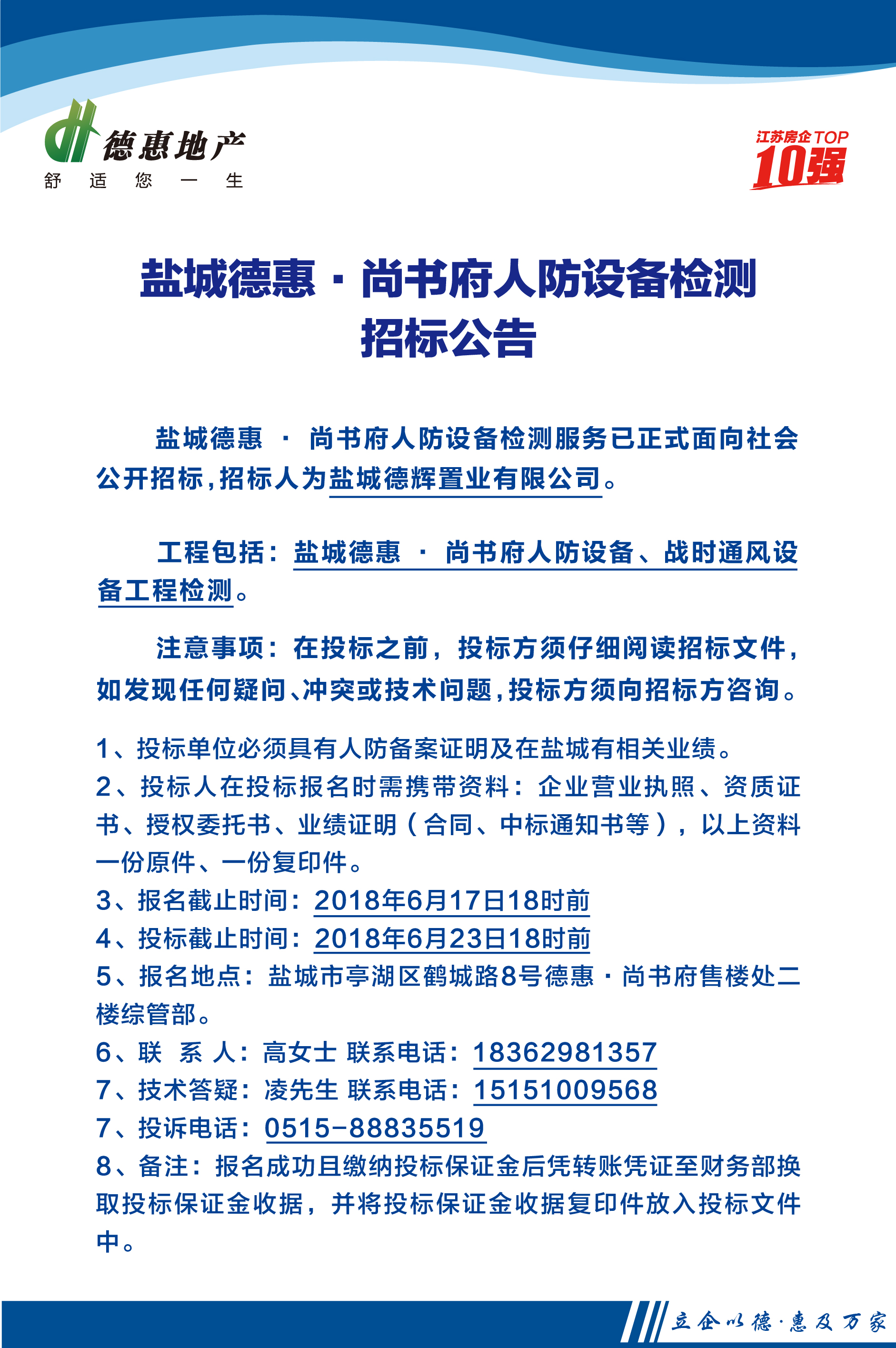 盐城德惠·尚书房锦苑三期(一标段)土建及安装工程招标公告