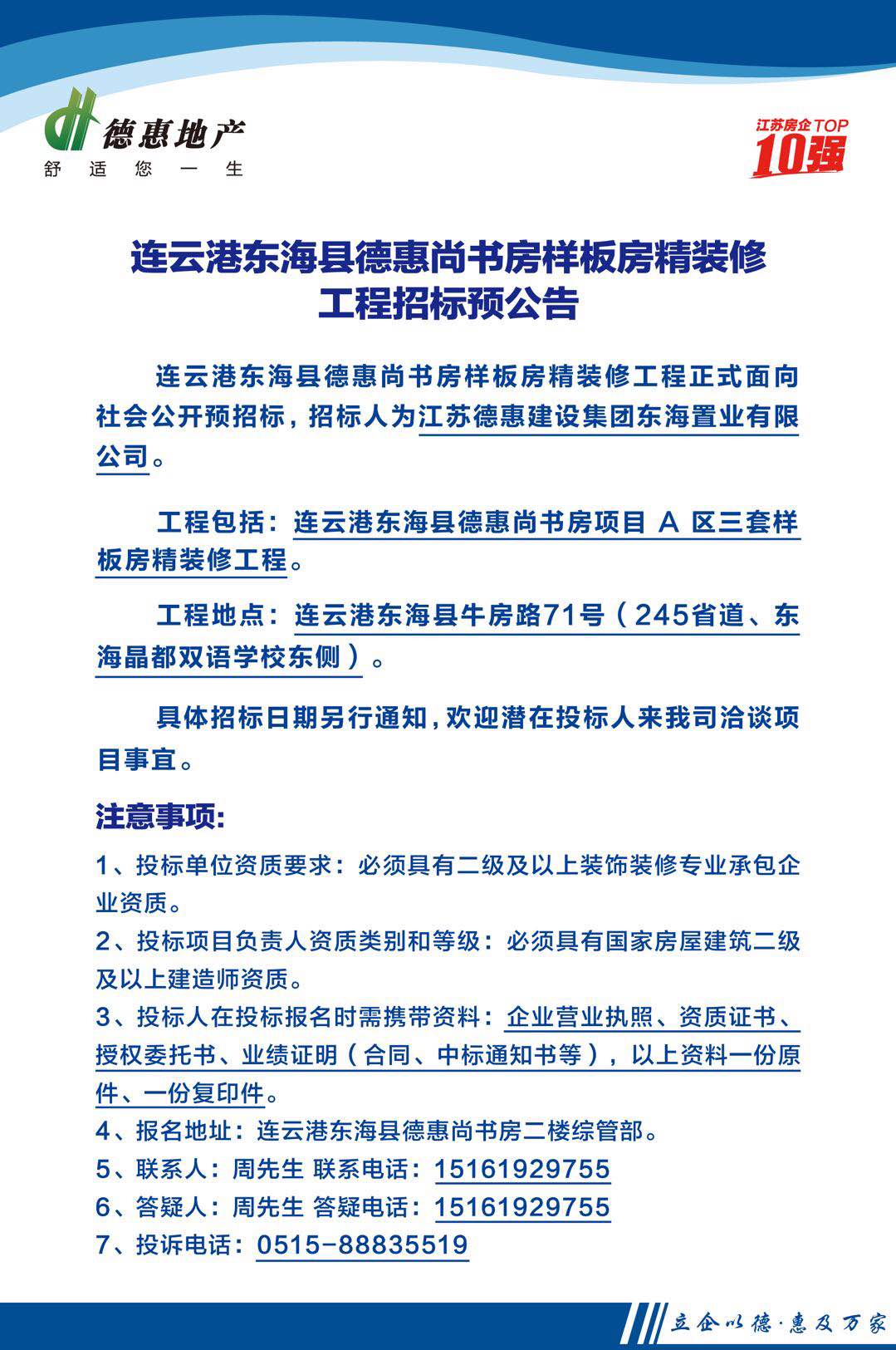 连云港东海县德惠尚书房样板房精装修工程招标预公告