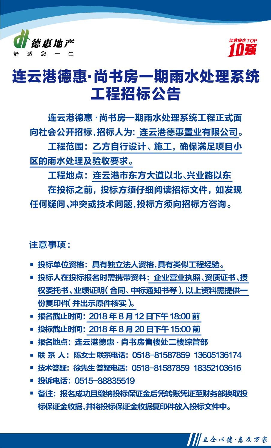 连云港德惠·尚书房一期雨水处理系统工程招标公告